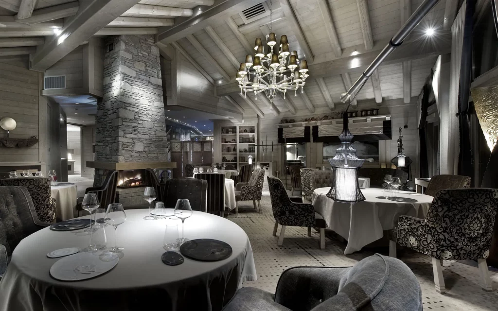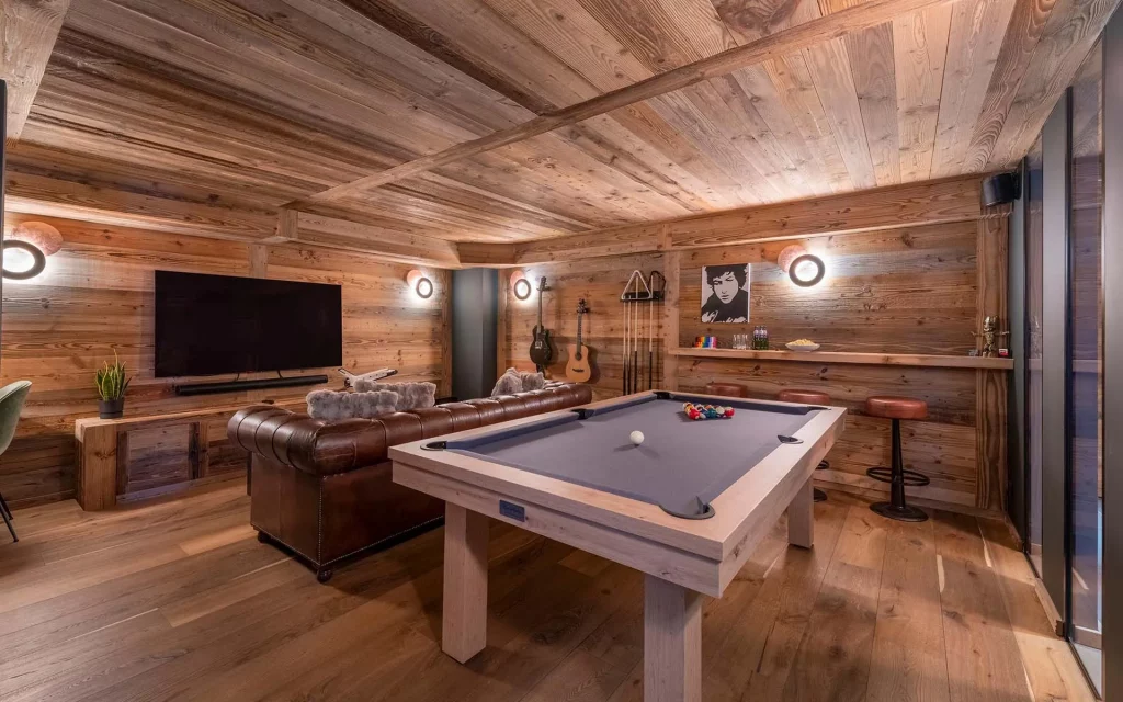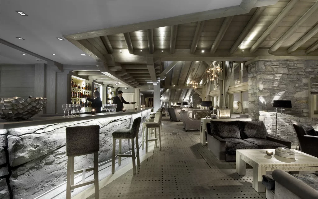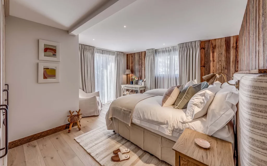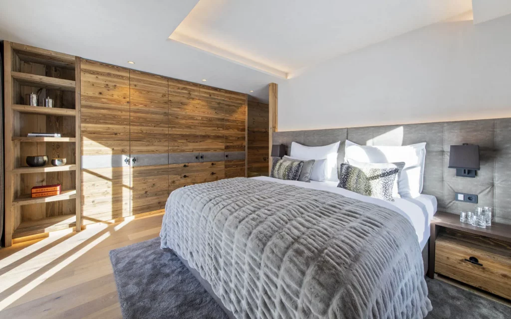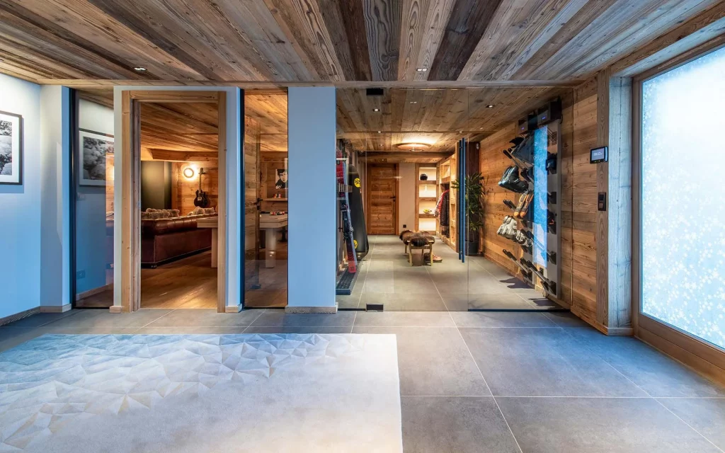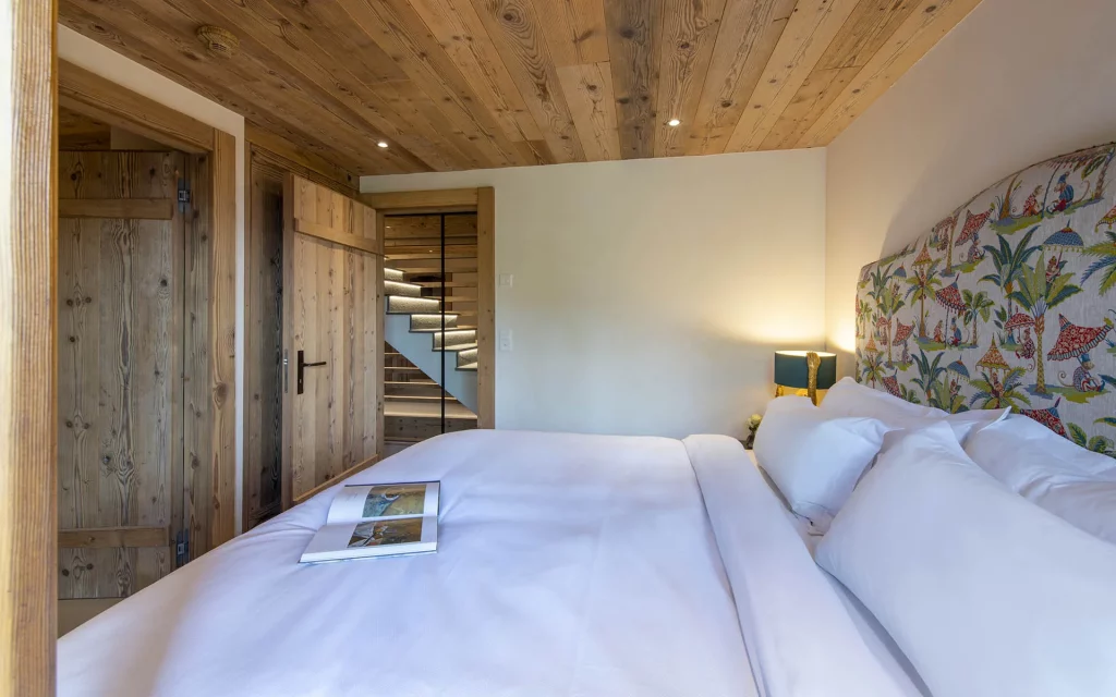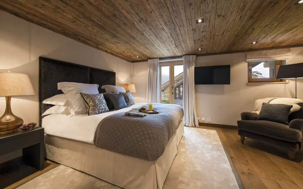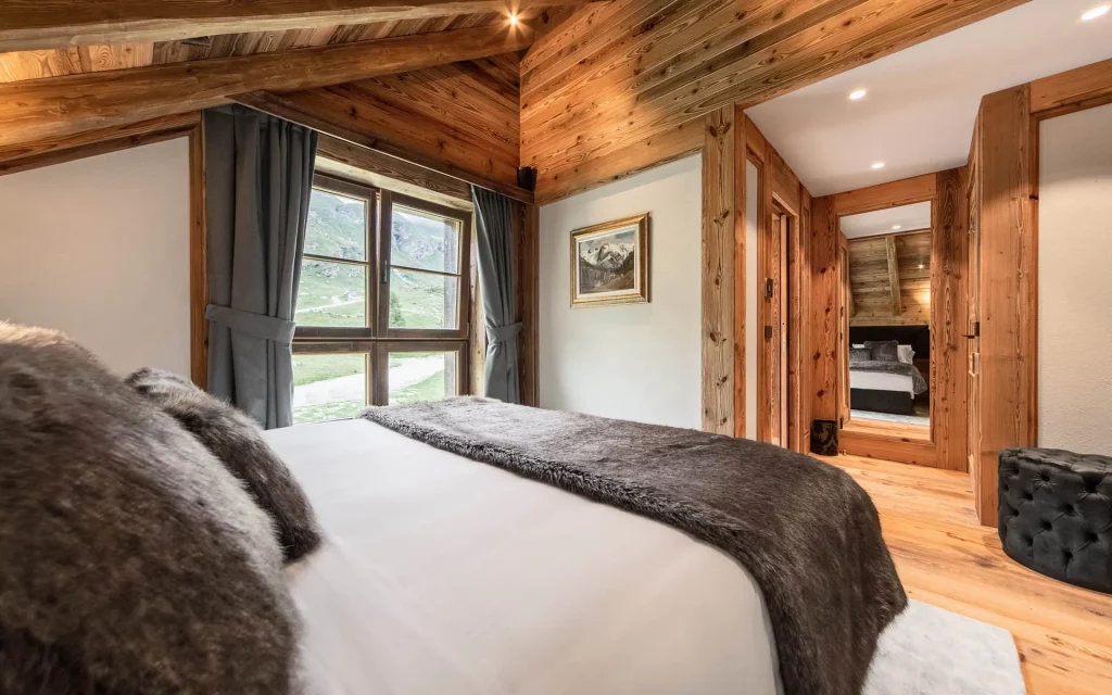 Шале у Межеві за проектом відомого Жерара Равелло створив американський парижанин Еліот Барнс. Камінь П'єра де Вальса та сосна - дві основні складові в обмеженій палітрі. Тут буквально все виготовлено із надякісних матеріалів і виглядає стильно та елегантно.