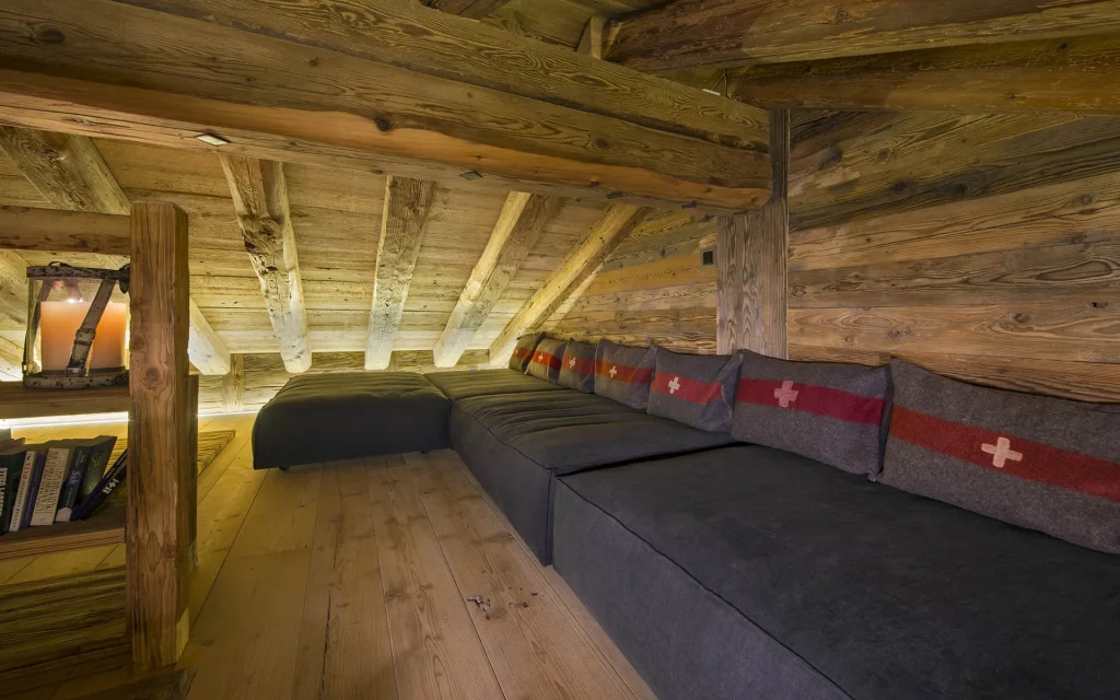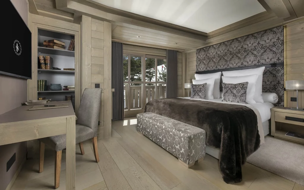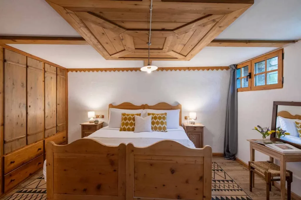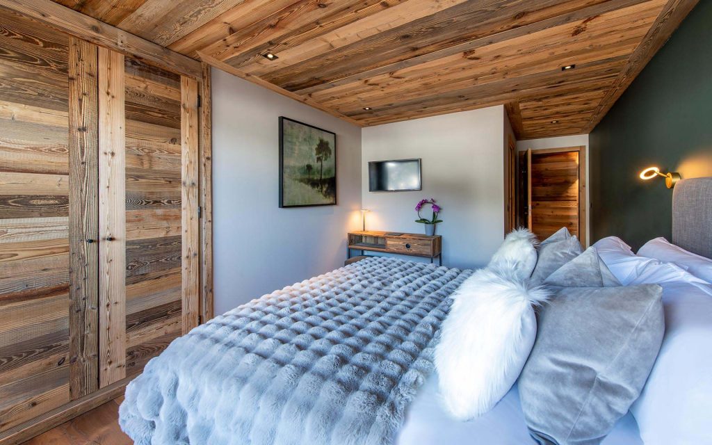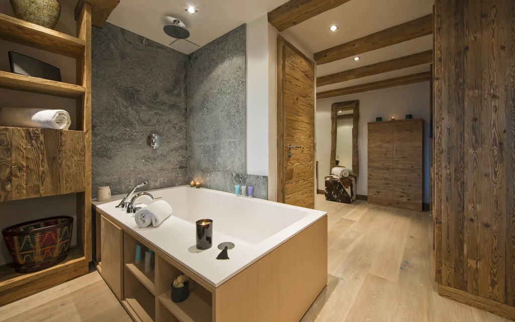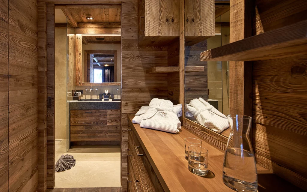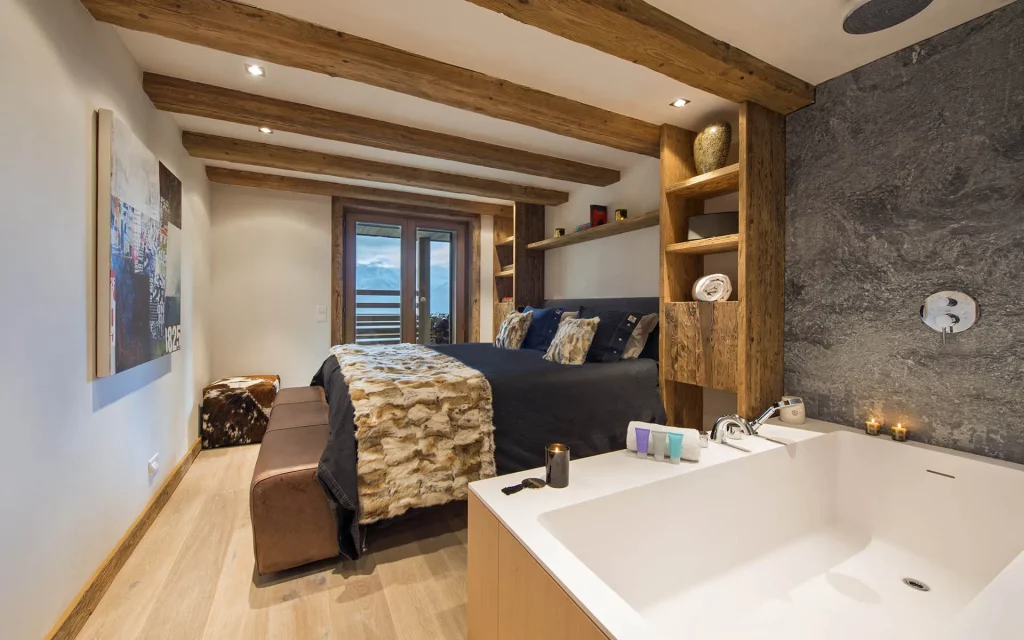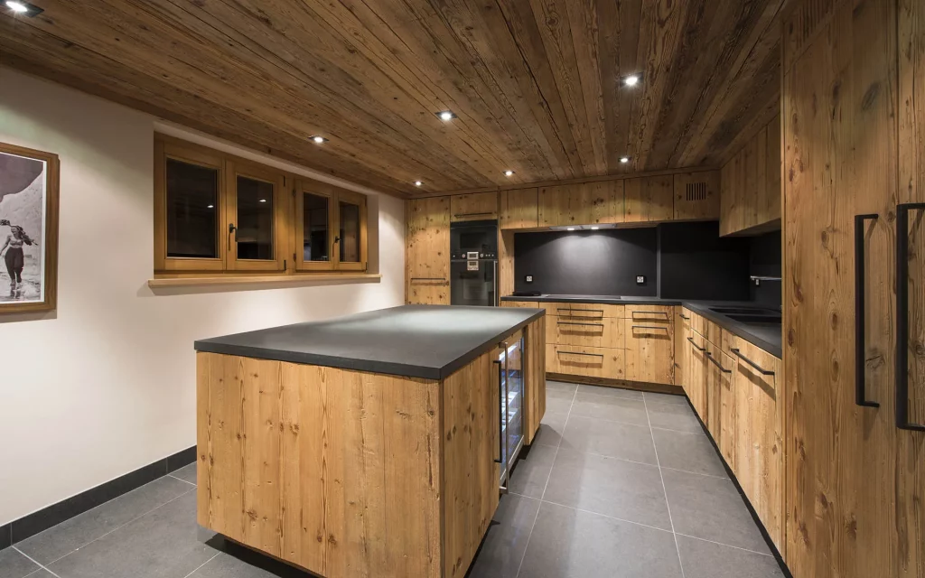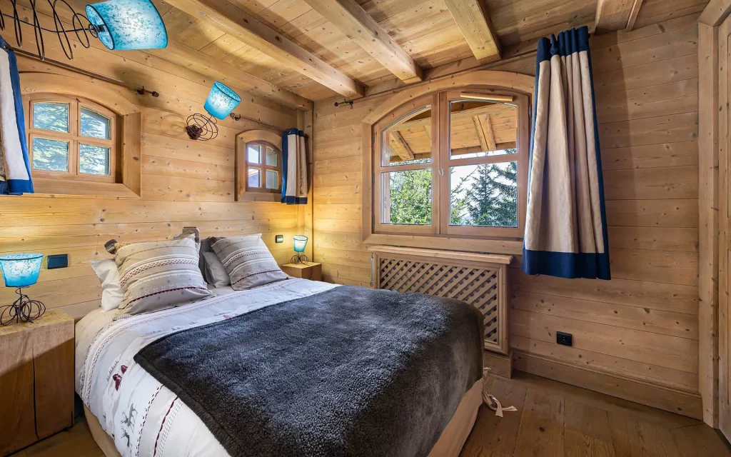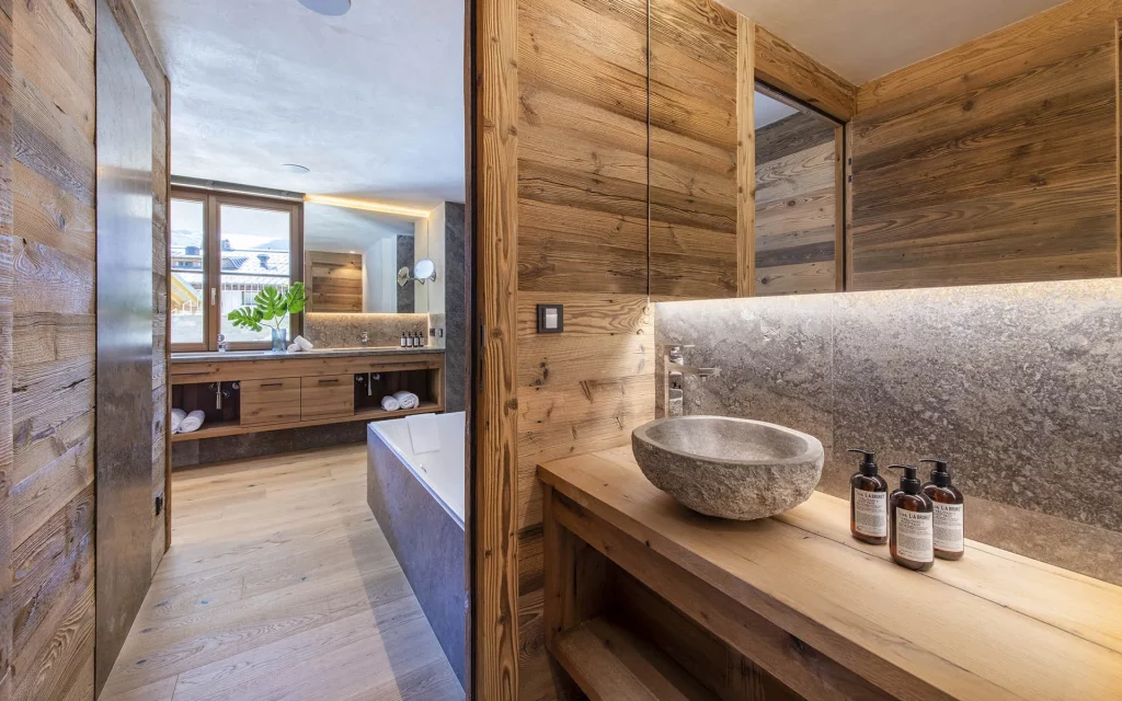 Шале у Межеві за проектом відомого Жерара Равелло створив американський парижанин Еліот Барнс. Камінь П'єра де Вальса та сосна - дві основні складові в обмеженій палітрі. Тут буквально все виготовлено із надякісних матеріалів і виглядає стильно та елегантно.