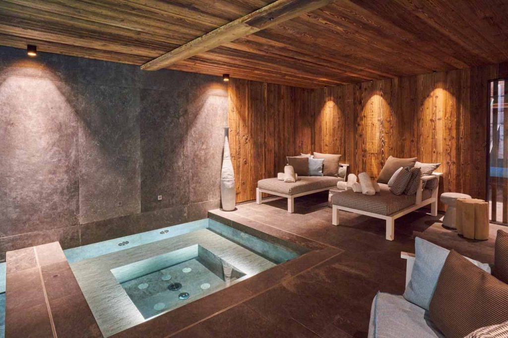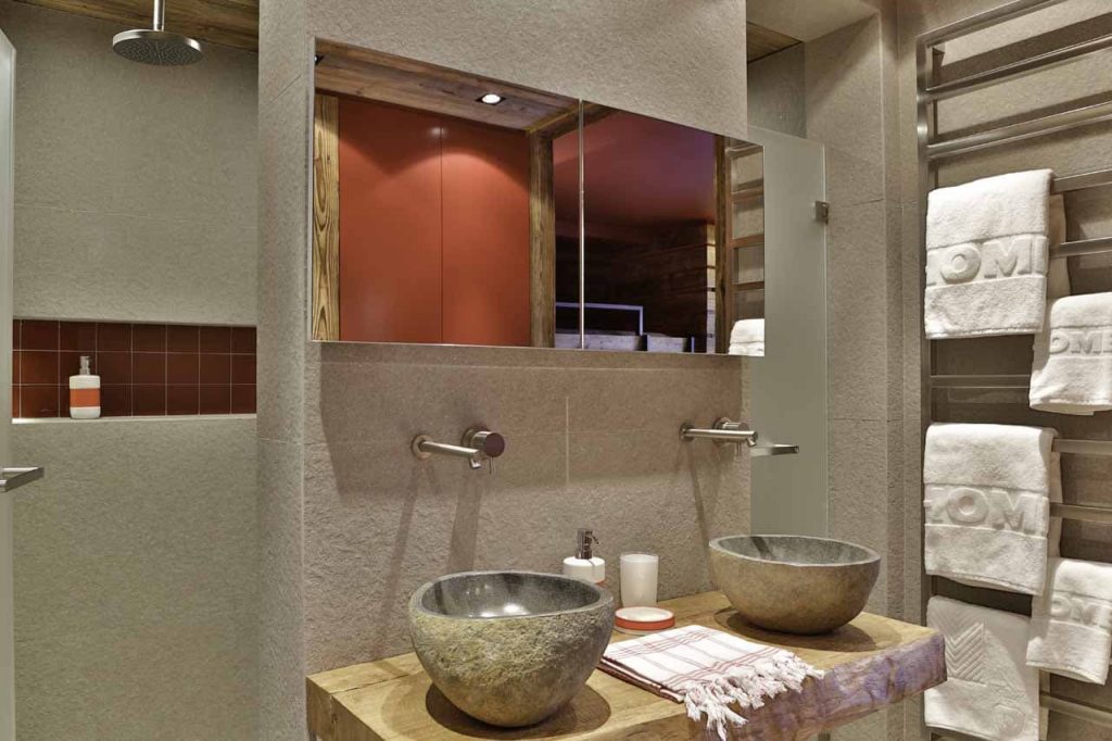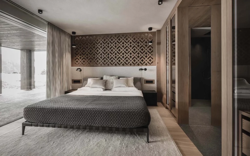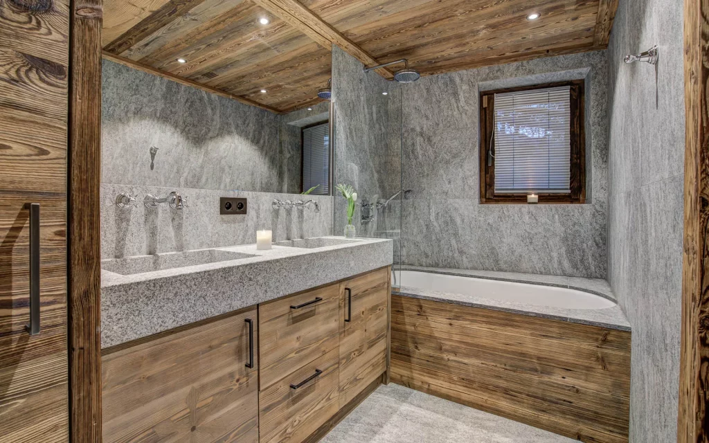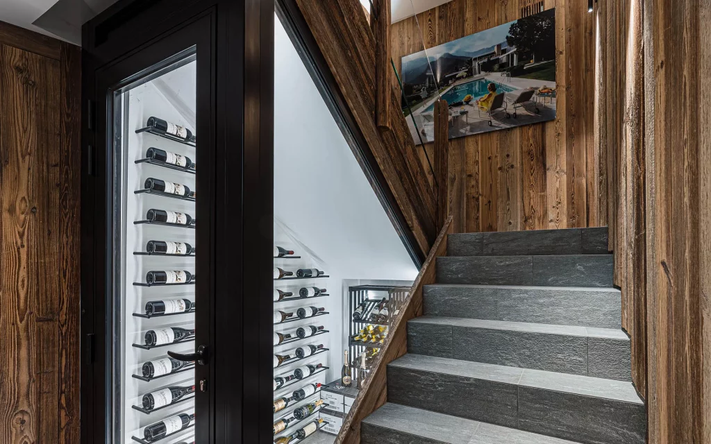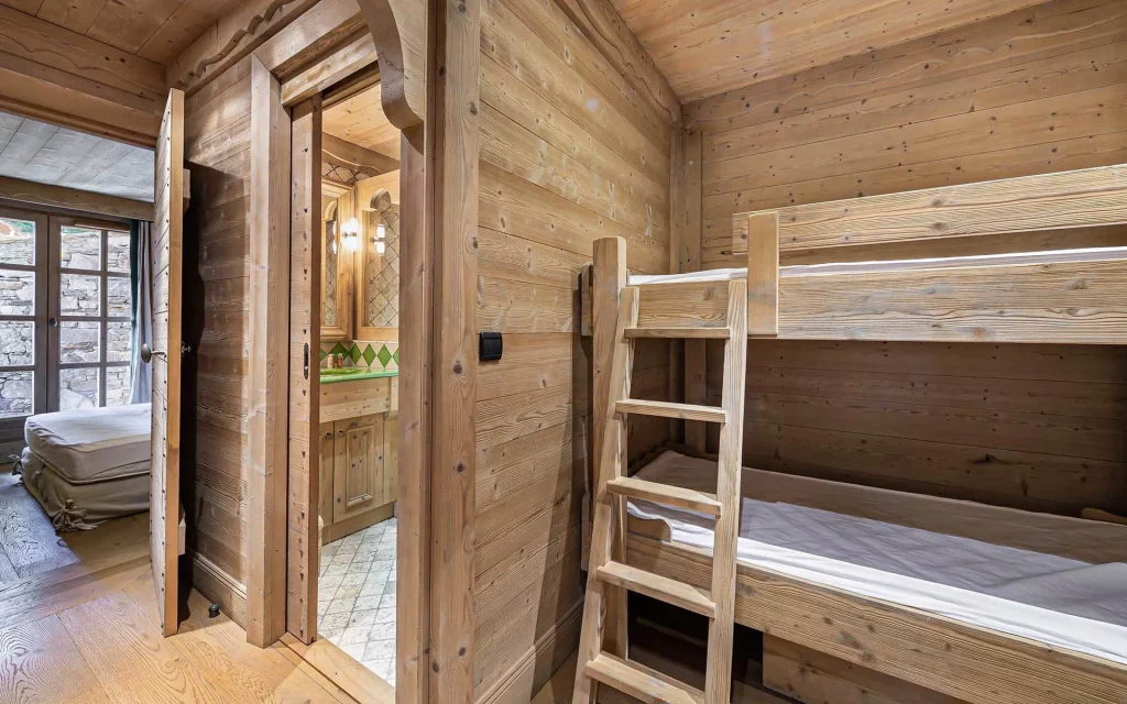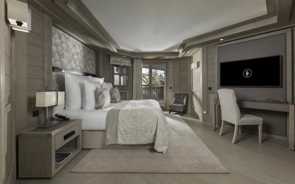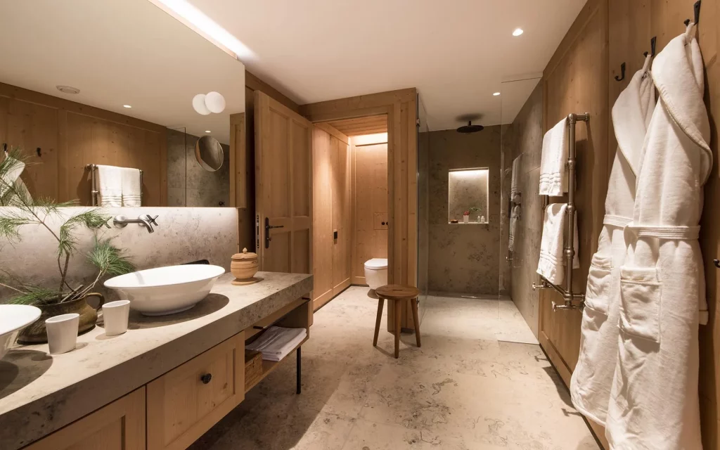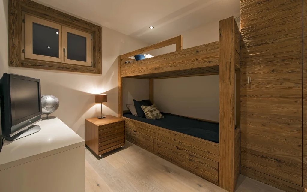 Шале у Межеві за проектом відомого Жерара Равелло створив американський парижанин Еліот Барнс. Камінь П'єра де Вальса та сосна - дві основні складові в обмеженій палітрі. Тут буквально все виготовлено із надякісних матеріалів і виглядає стильно та елегантно.