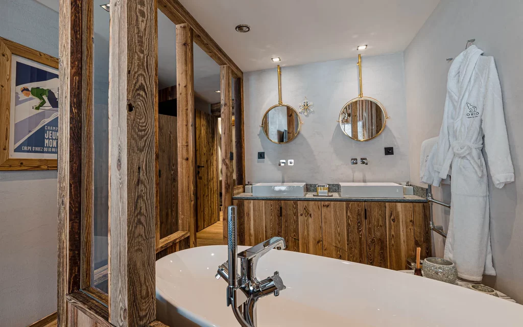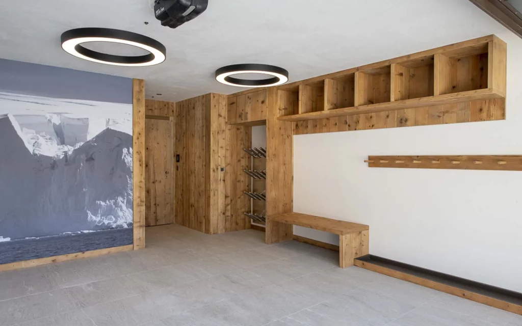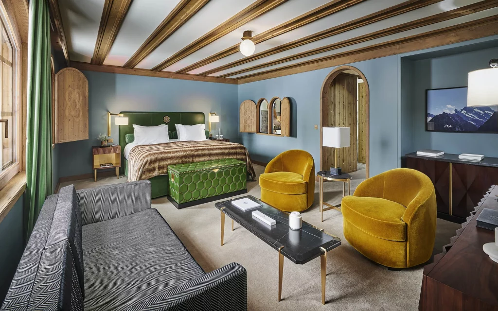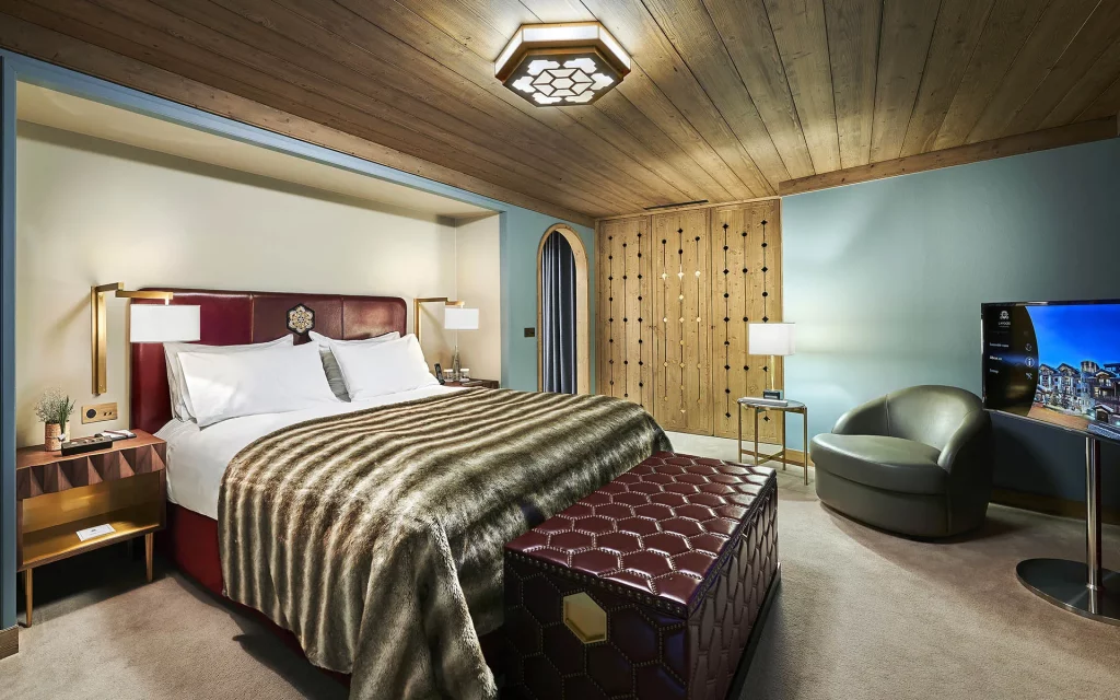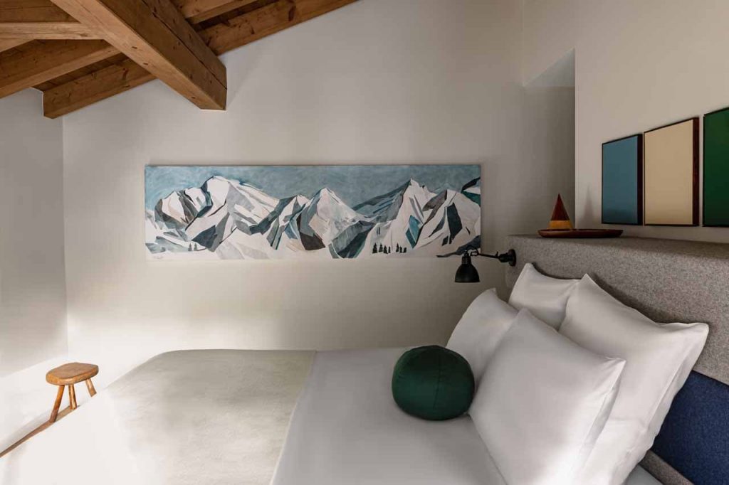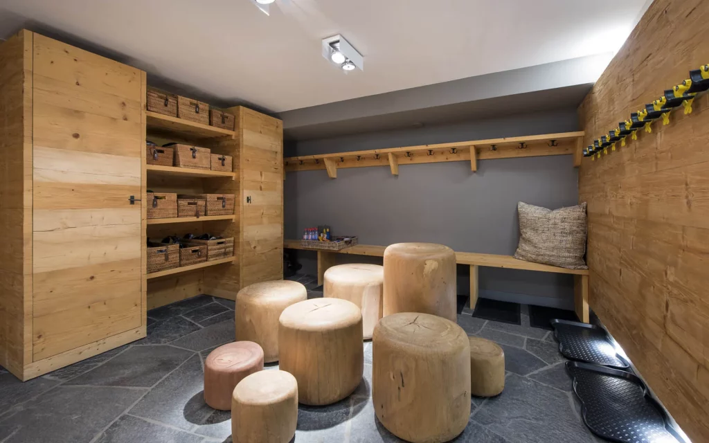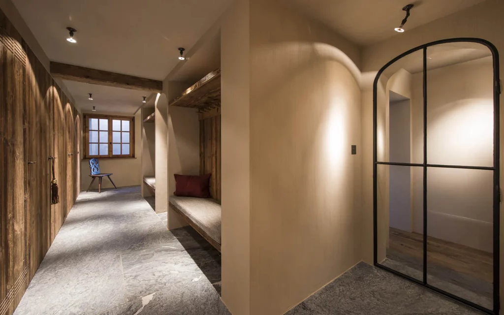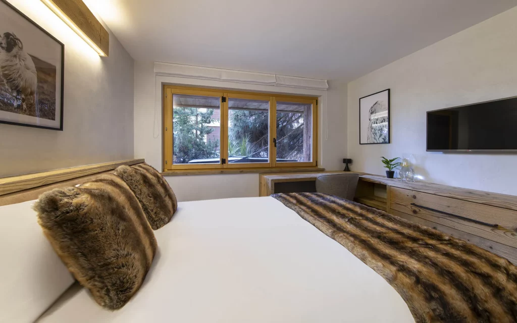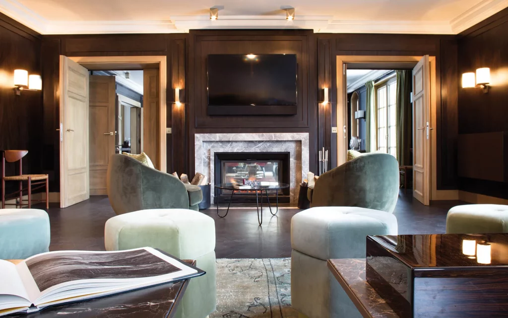 Шале у Межеві за проектом відомого Жерара Равелло створив американський парижанин Еліот Барнс. Камінь П'єра де Вальса та сосна - дві основні складові в обмеженій палітрі. Тут буквально все виготовлено із надякісних матеріалів і виглядає стильно та елегантно.
