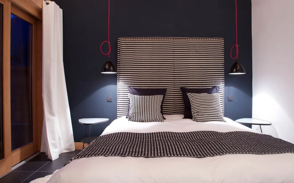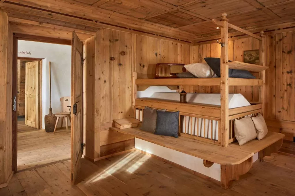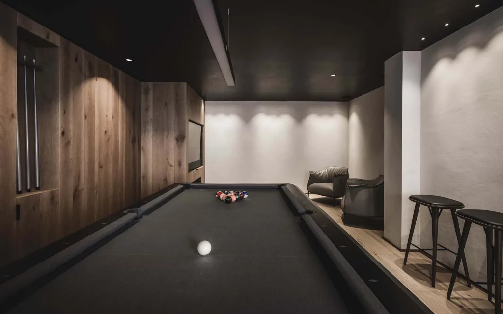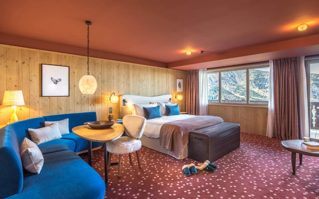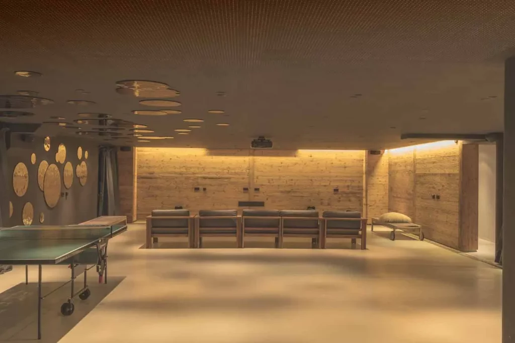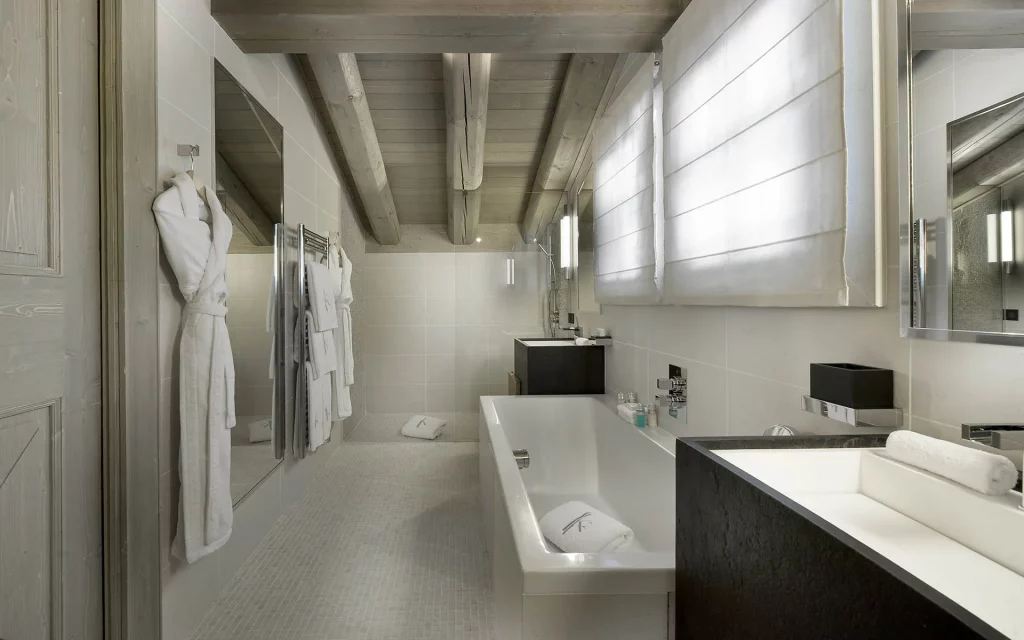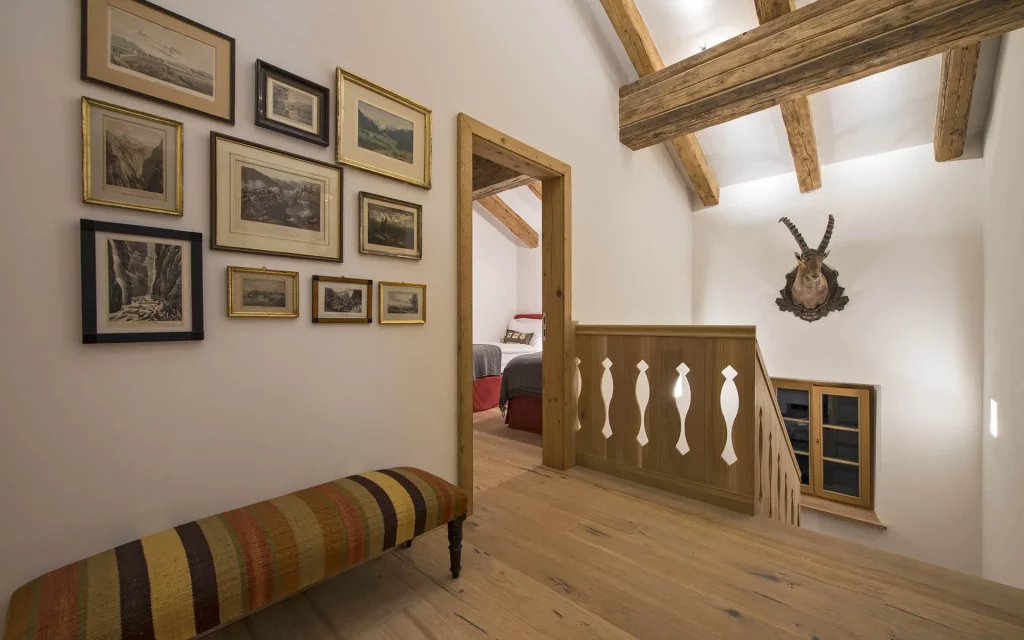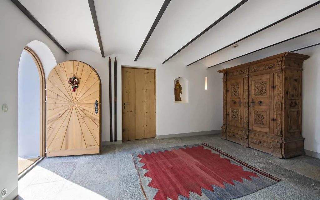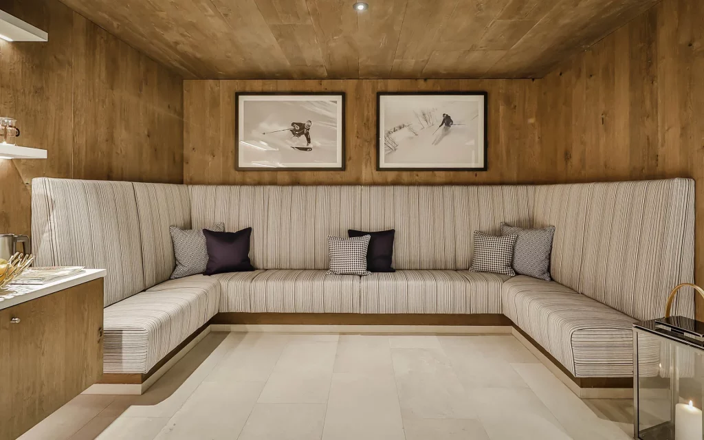 Шале у Межеві за проектом відомого Жерара Равелло створив американський парижанин Еліот Барнс. Камінь П'єра де Вальса та сосна - дві основні складові в обмеженій палітрі. Тут буквально все виготовлено із надякісних матеріалів і виглядає стильно та елегантно.