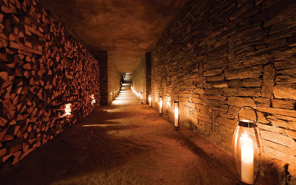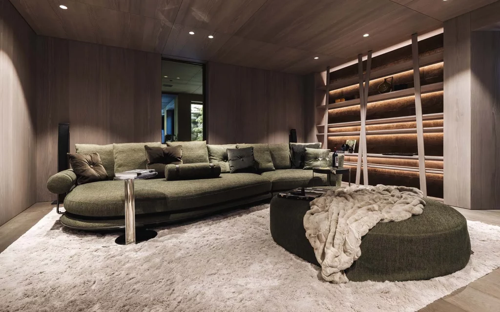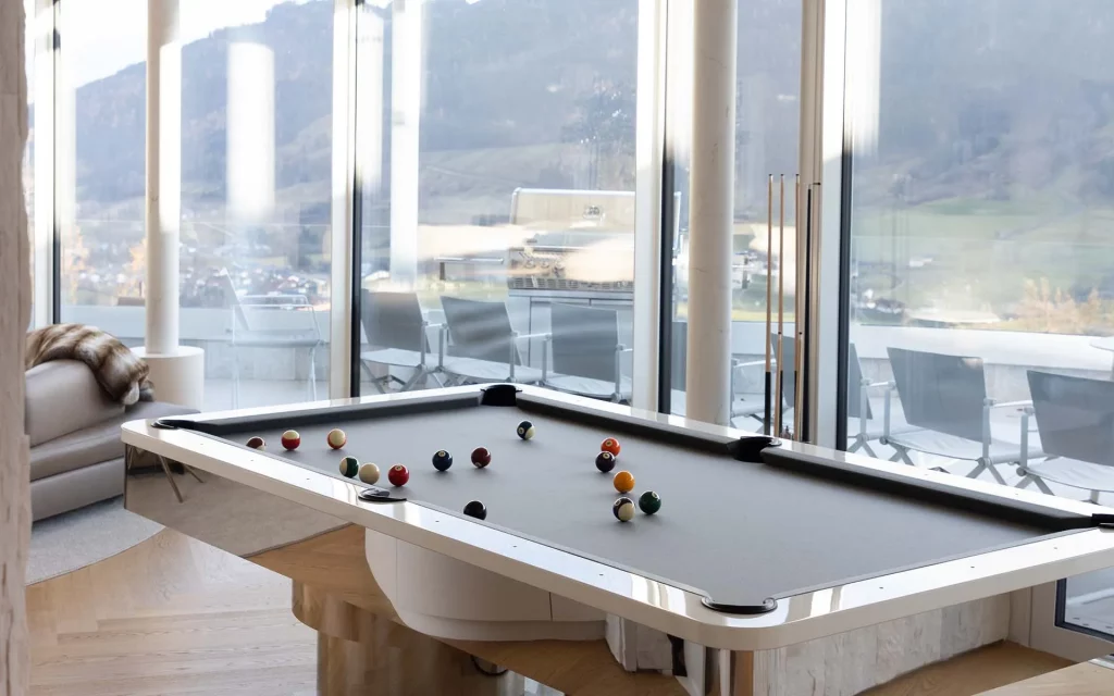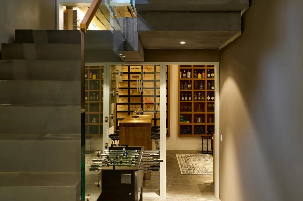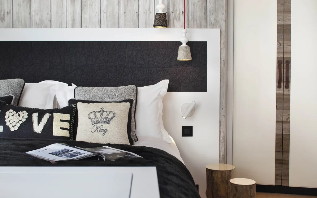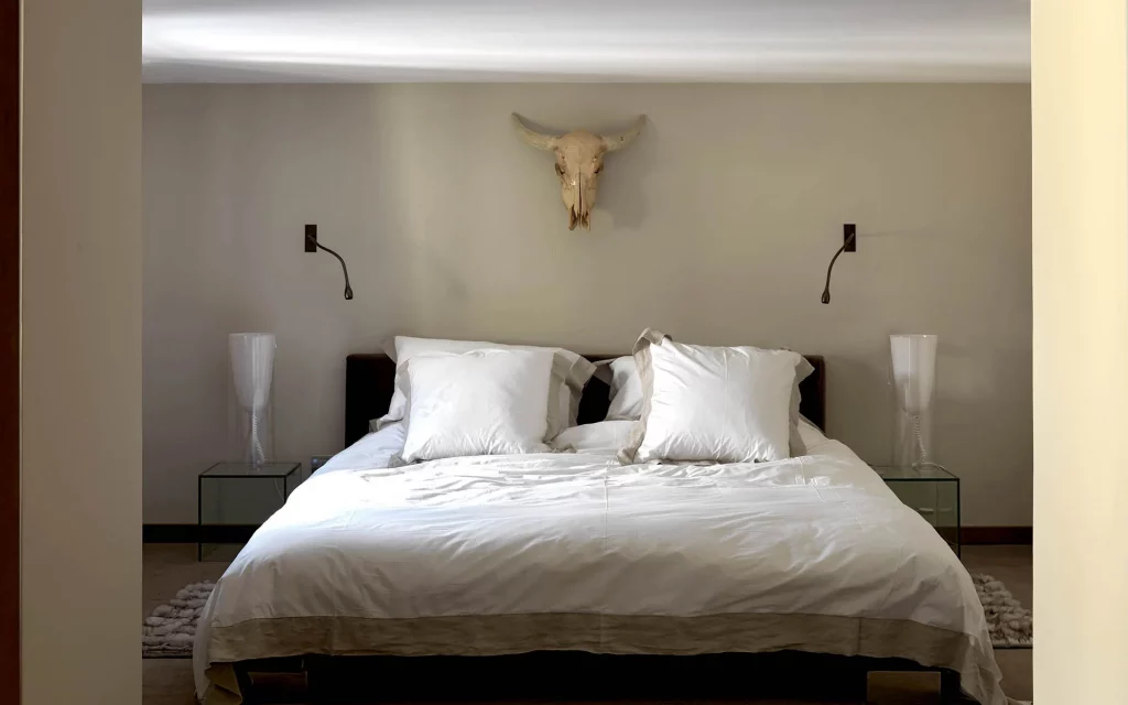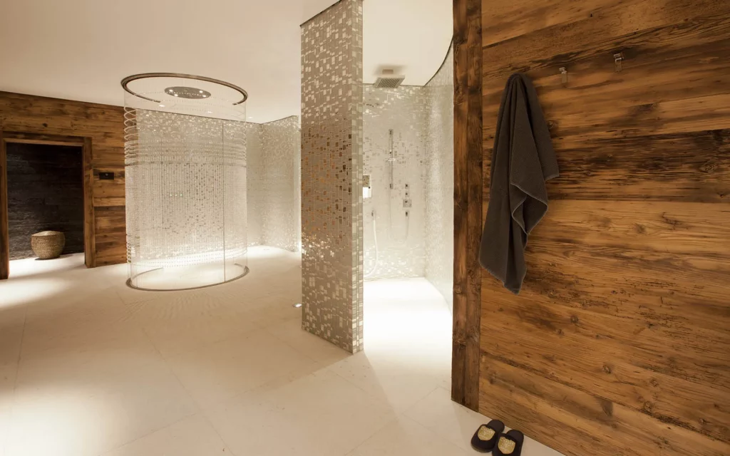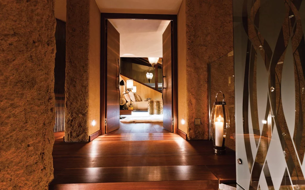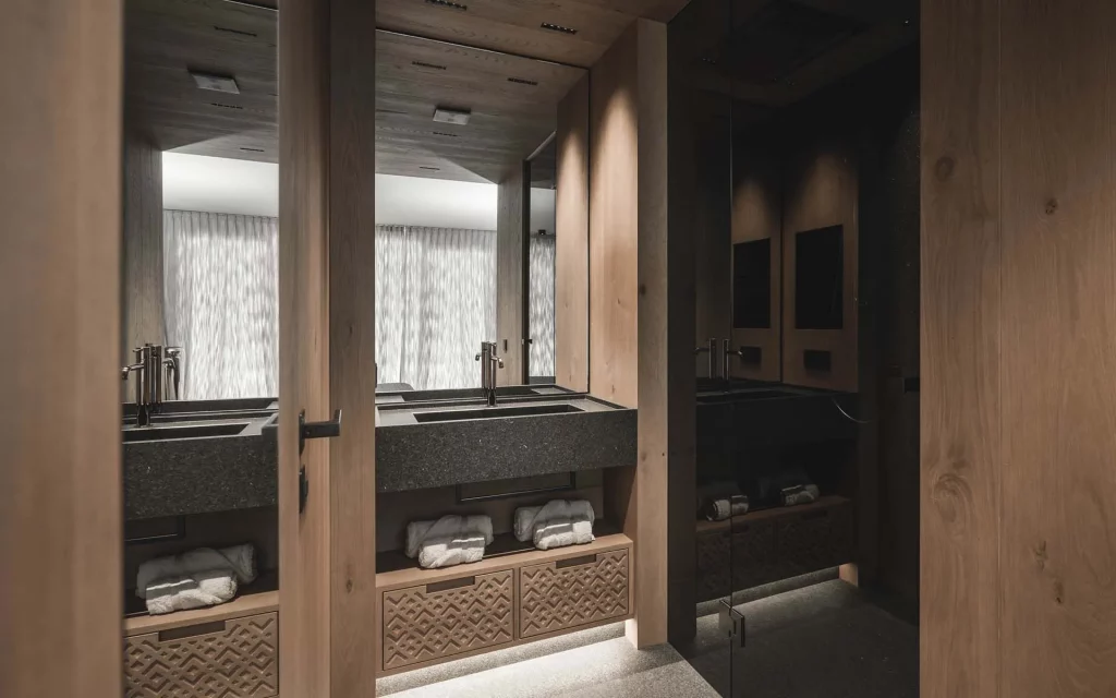 Шале у Межеві за проектом відомого Жерара Равелло створив американський парижанин Еліот Барнс. Камінь П'єра де Вальса та сосна - дві основні складові в обмеженій палітрі. Тут буквально все виготовлено із надякісних матеріалів і виглядає стильно та елегантно.
