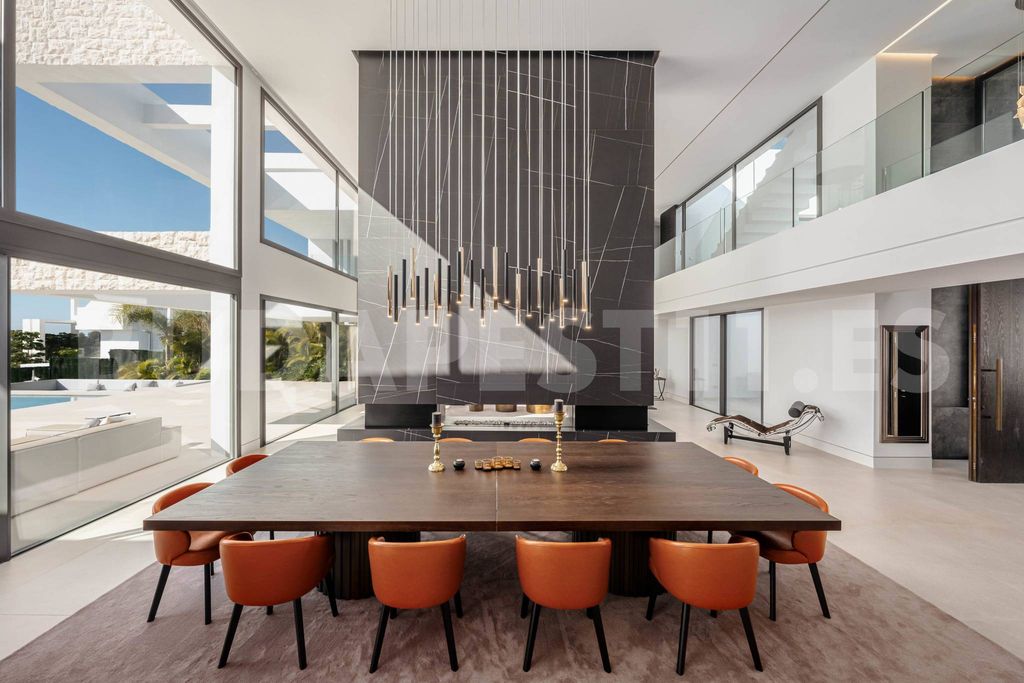 Відкрийте для себе сучасну розкіш та елегантність цієї вілли з 5 спальнями, розташованої в спокійному районі Ла-Алкерія, де на вас чекає безтурботна атмосфера та захоплюючі панорамні краєвиди. З вікон, що виходять на південну сторону, відкривається захоплюючий вид на поле для гольфу, блискучий басейн, спокійне озеро, величні гори та частковий вид на море, забезпечуючи неперевершену розкіш життя.