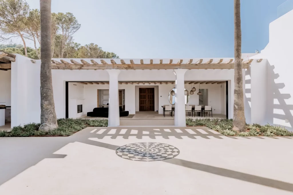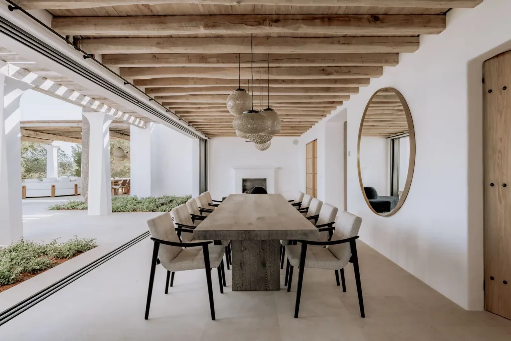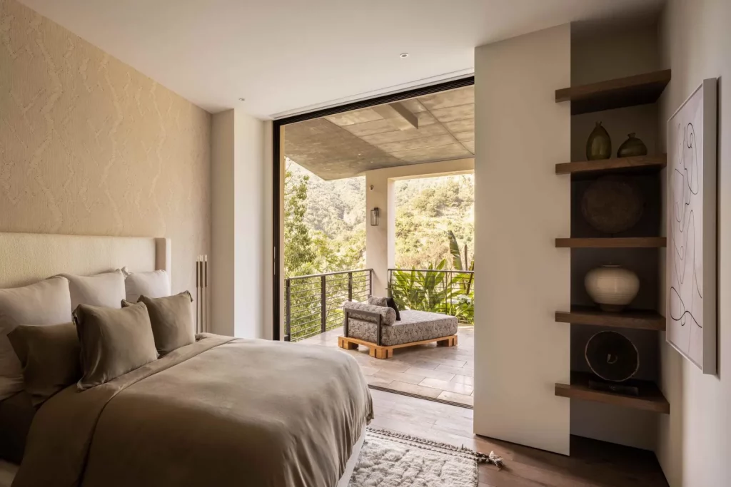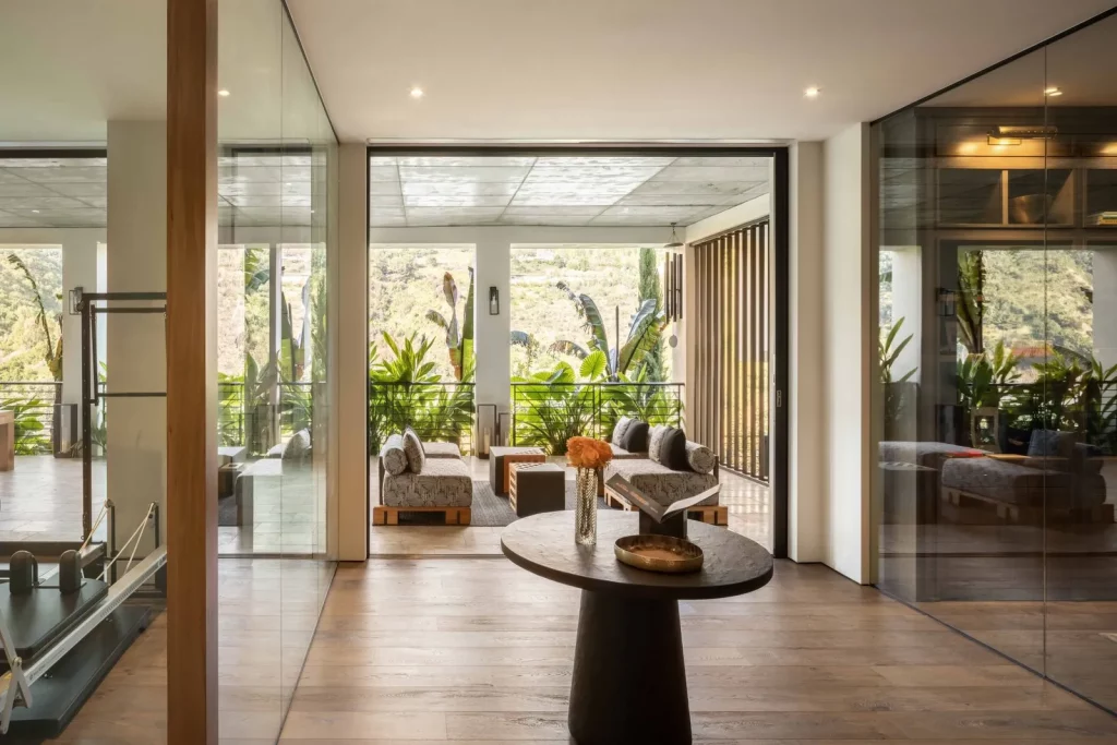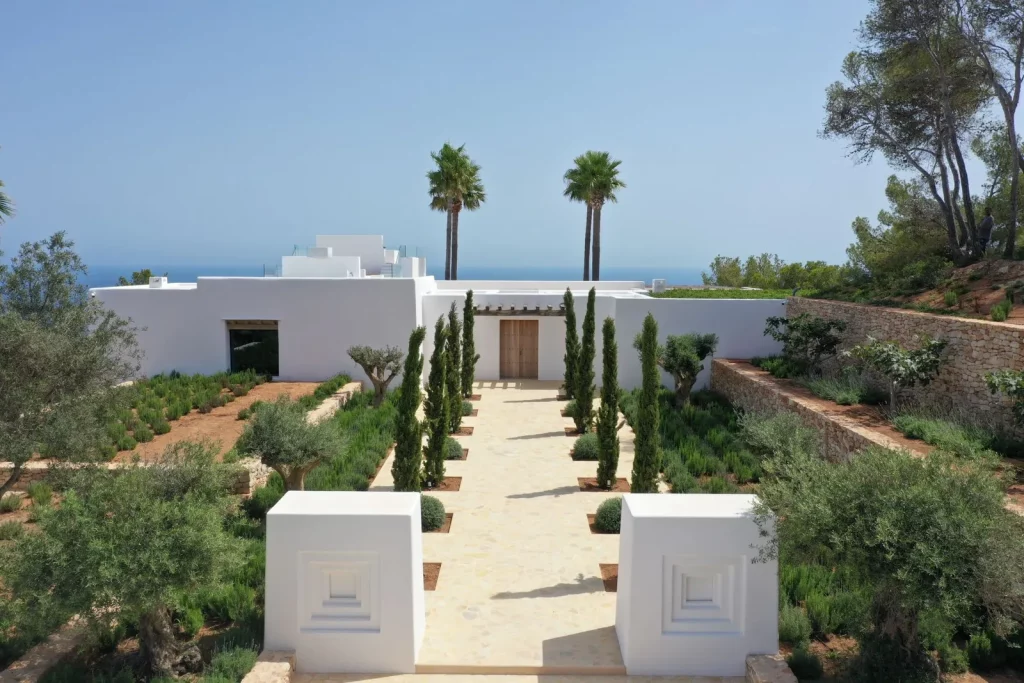 Коридор з оливковими деревами приведе вас до головного входу, звідки ви зможете вперше подивитись на вид на море, який продовжує розширюватися в міру того, як ви входите до будинку. А як тільки ви вийдете на зовнішню терасу з видом на басейн, опинитеся в оточенні лісу та моря.