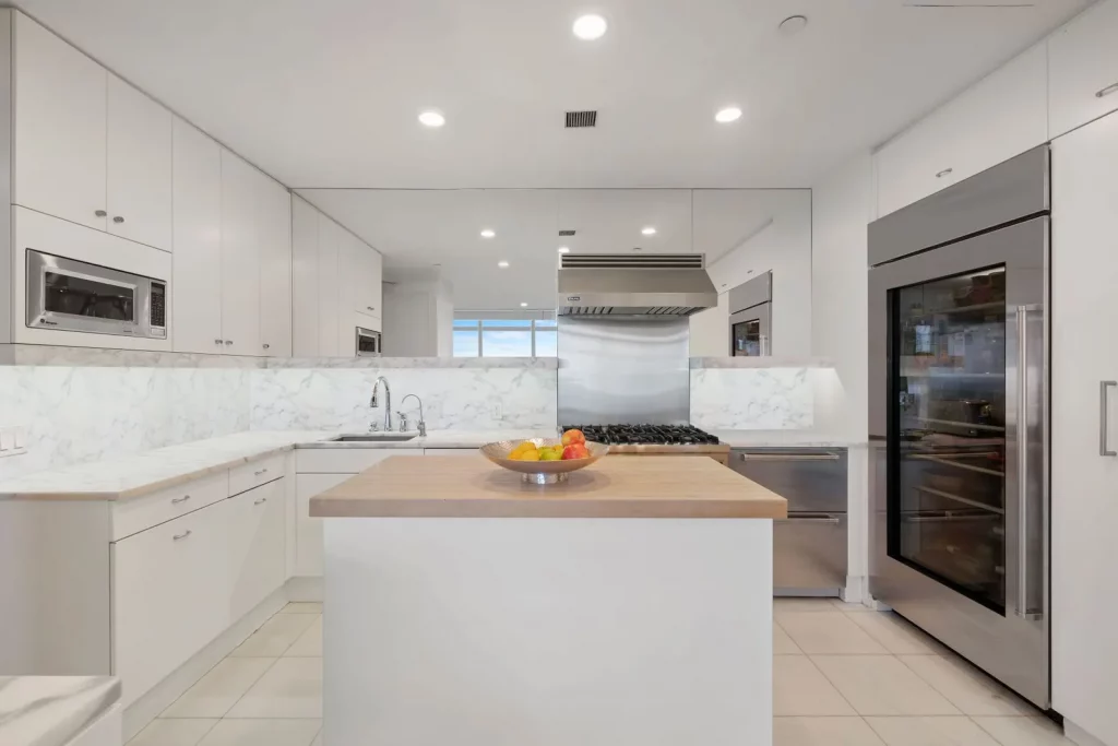 Поруч із FDR знаходиться повністю обладнана кухня-їдальня, яку можна відкрити для просторого розважального простору або закрити для більш інтимної трапези.