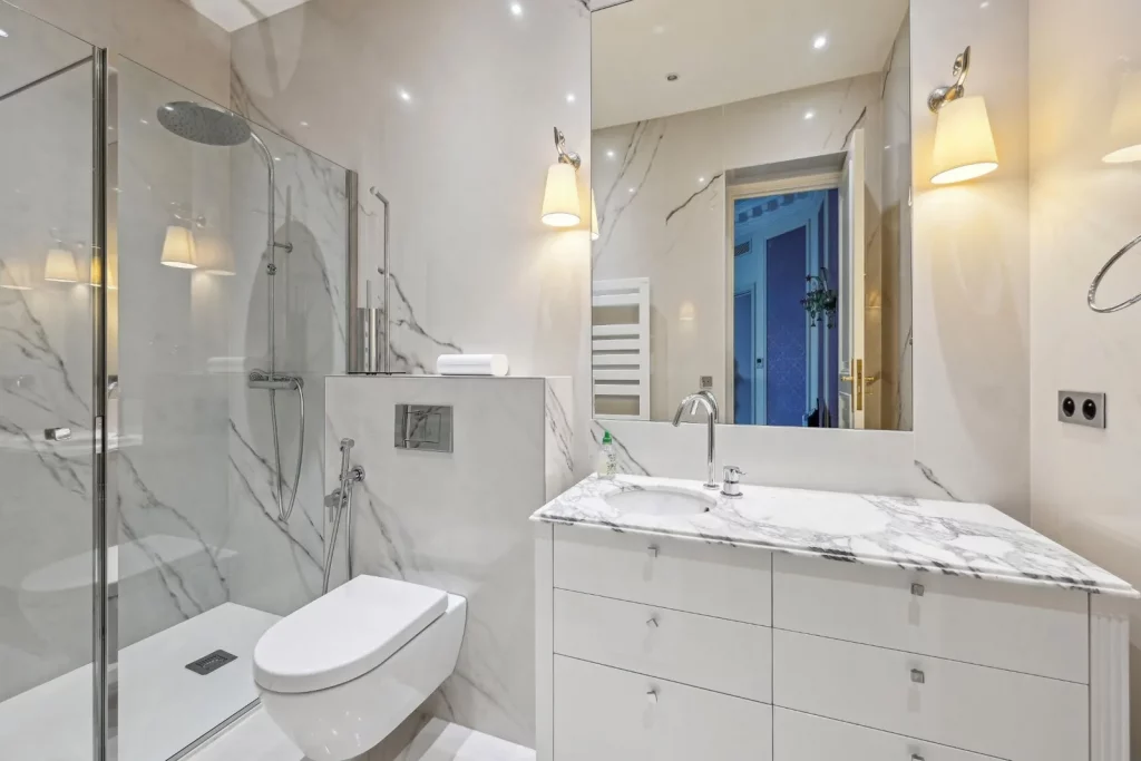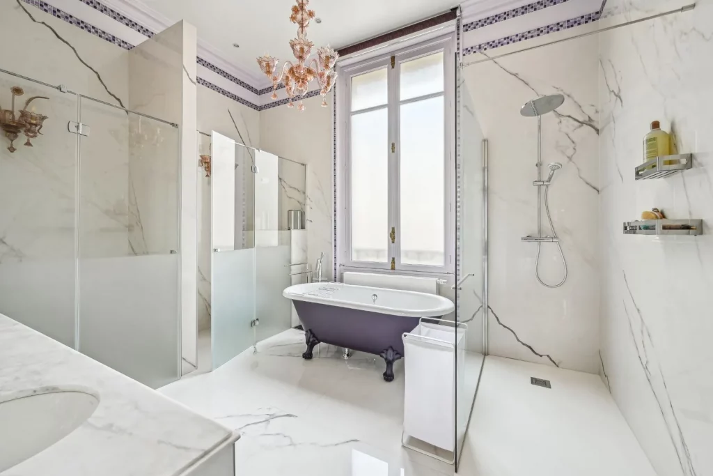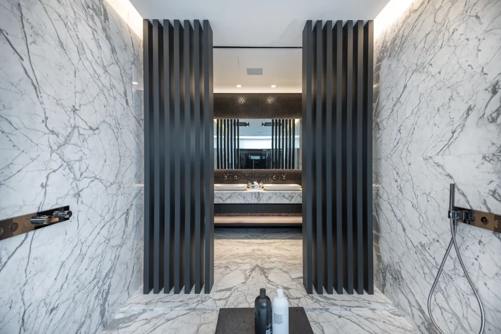 Також є великий основний люкс із двома великими мармуровими ванними кімнатами та гардеробною.