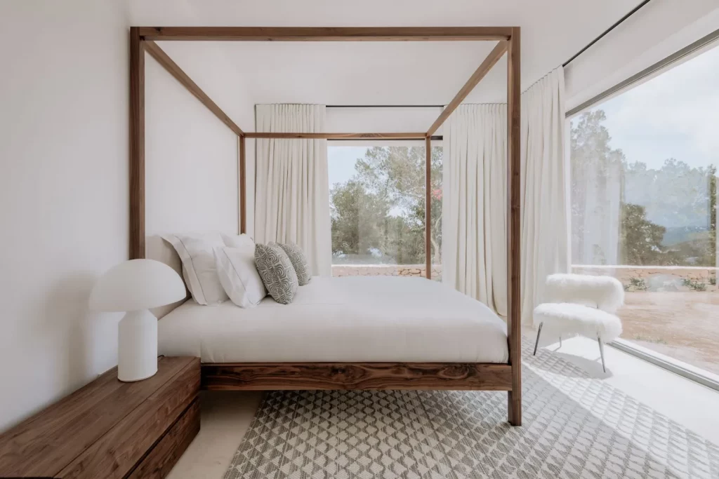 На цьому ж поверсі можемо пройти до головної спальні з ванною кімнатою та вікнами з видом на чудову сільську місцевість острова, а також на море.