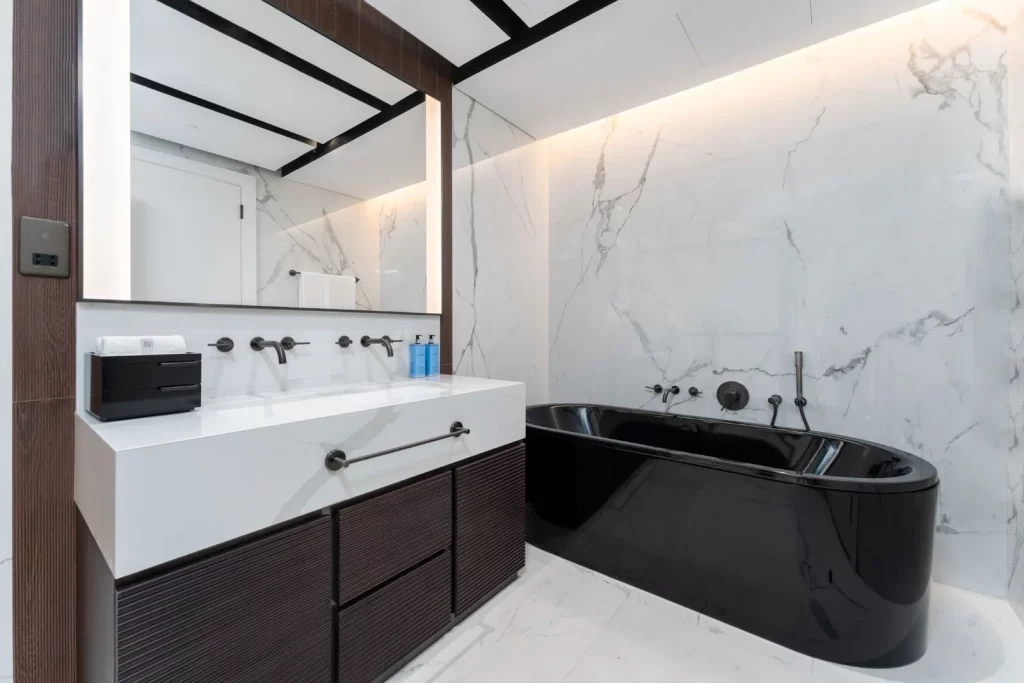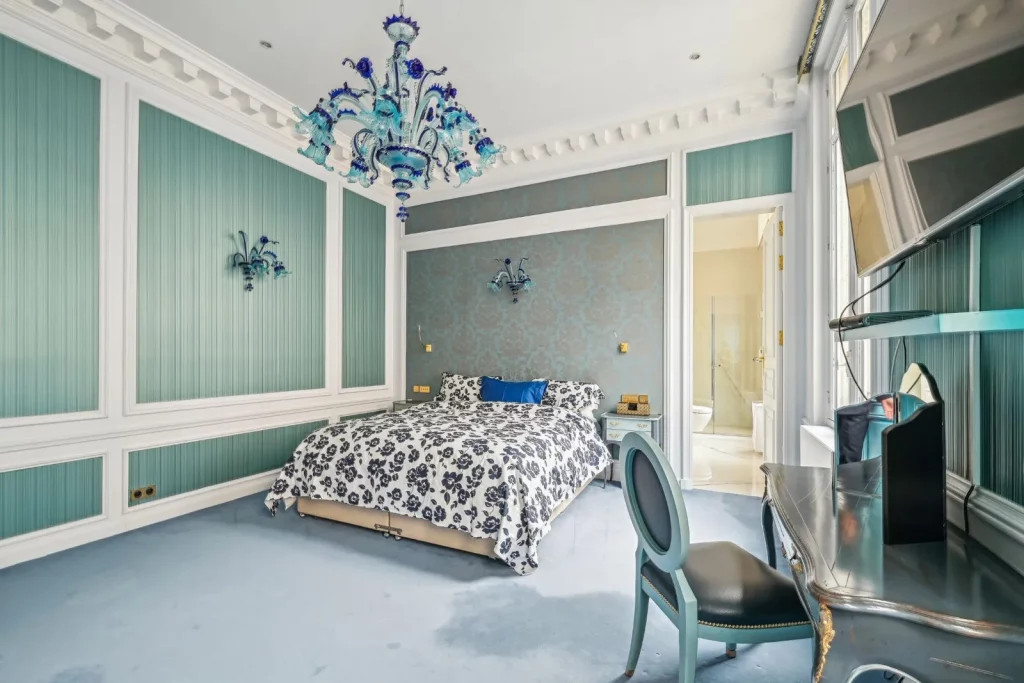 У будинку п'ять спалень з ванними кімнатами, кожна з унікальними мармуровими ванними кімнатами та просторими вбудованими шафами. Головний люкс з видом на Гайд-парк має дві ванні кімнати з гідромасажними басейнами в стилі джакузі і просторими вбиральнями.