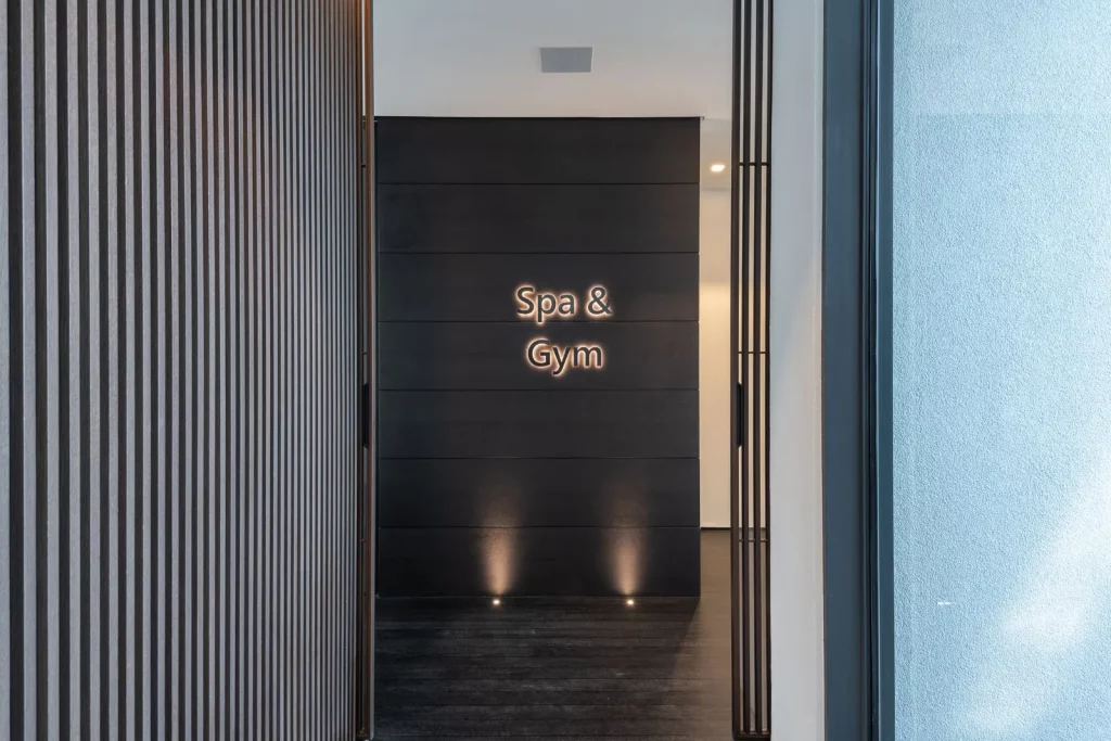 На другому поверсі розташовані три спальні з ванними кімнатами, повністю обладнаний тренажерний зал та приватний спа-центр із власним масажним кабінетом, тропічним душем, джакузі та сауною. На другому поверсі знаходиться розважальна зона на відкритому повітрі з баром і головна спальня з величезними «його та її» спальнями, вбиральні та навіть окрема взуттєва шафа. Підвал є прихованою скарбницею унікальних зручностей з власним кінозалом, більярдним столом і приватним звіринцем, в якому живуть черепахи та качки. Для автолюбителів є підземне паркування з власним ліфтом на перший поверх. Екстер'єр був майстерно спроектований з зоною відпочинку та каміном, барбекю та літньою кухнею, вітальнею, обідньою зоною на 10 осіб та пейзажним басейном із висувним плоским екраном.