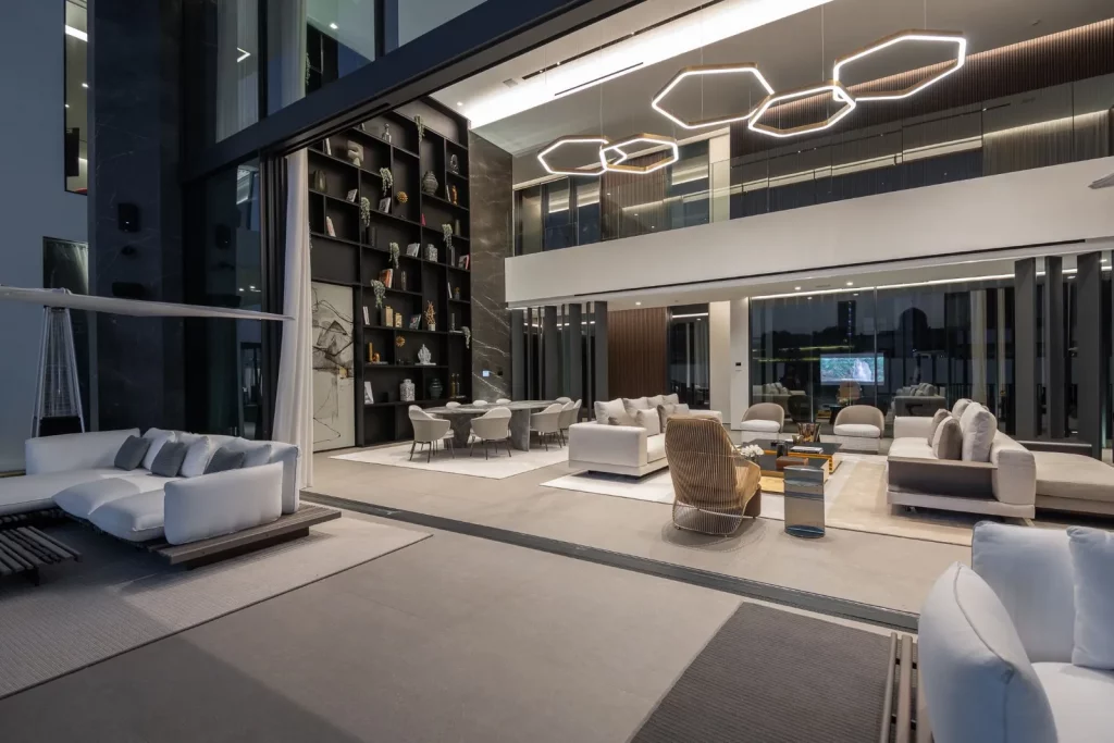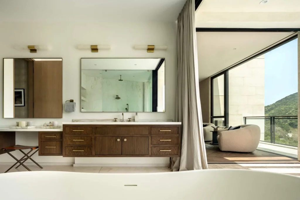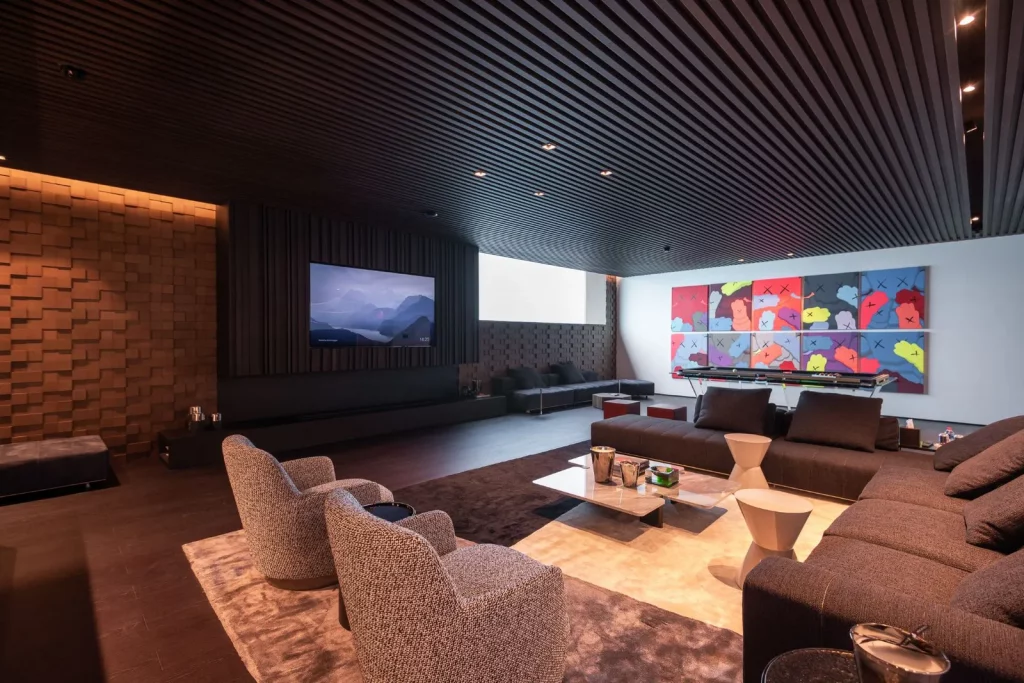 Є ще 3 спальні з ванними кімнатами, обробленими мармуром, та медіа-зал подвійної висоти.