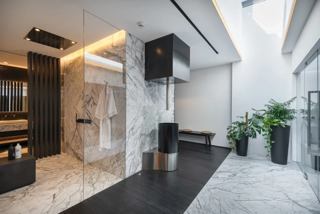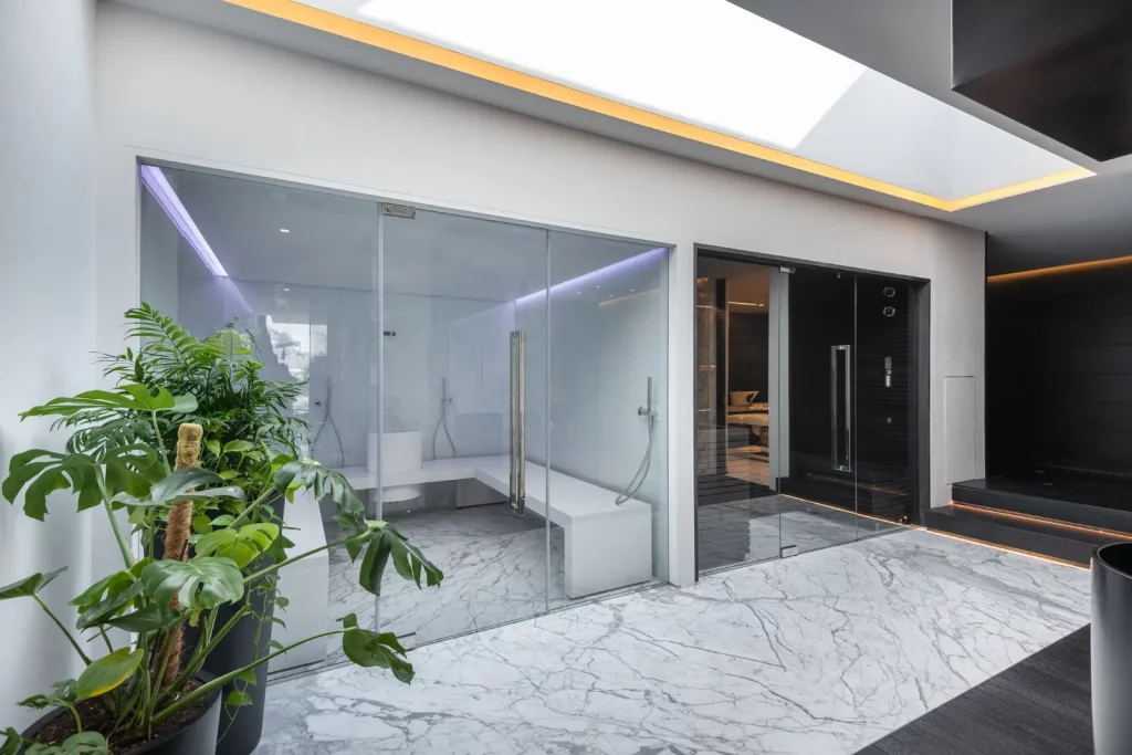 Відкриті зони призначені для відпочинку і розваг: критий басейн з підігрівом, турецька лазня, джакузі та крита тераса з захоплюючими видами. Вбудована зона барбекю додає додатковий штрих до посиденьок на свіжому повітрі.