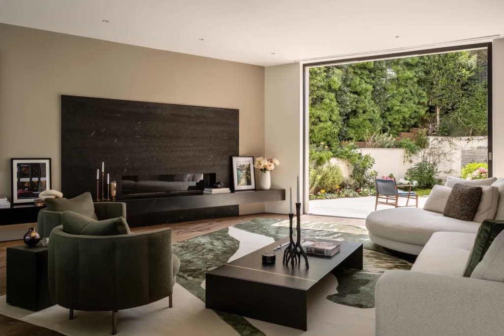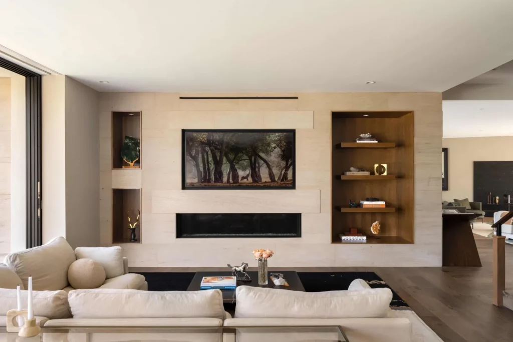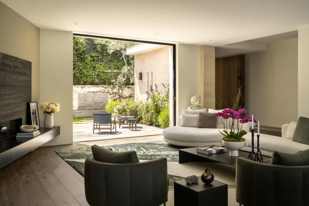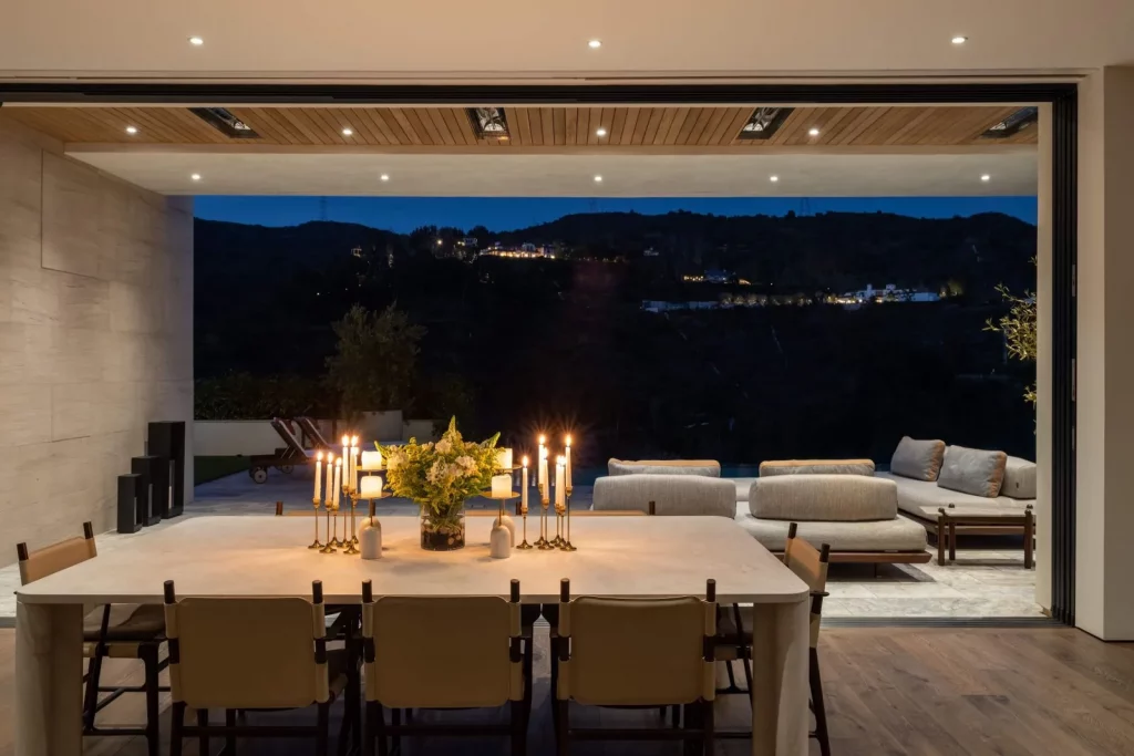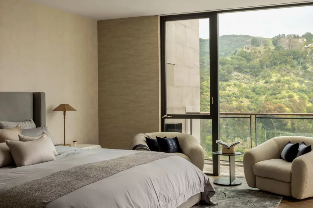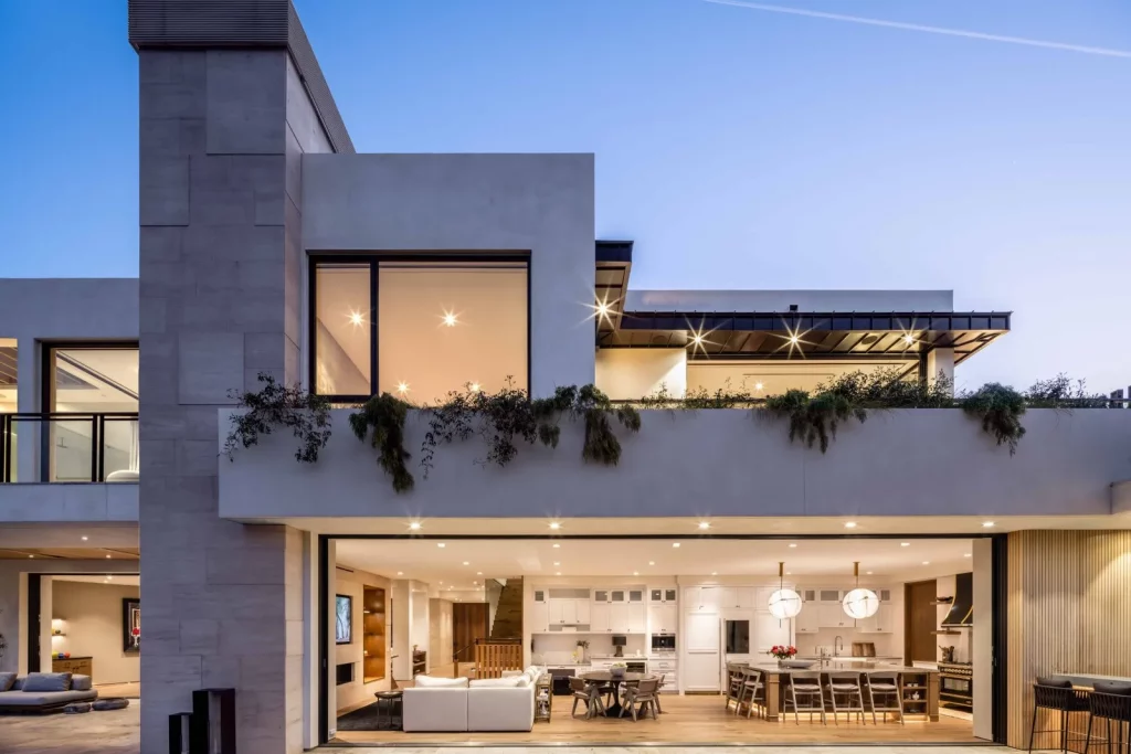 Будинок, розташований у престижному районі Брентвуд у Лос-Анджелесі, є нещодавно збудованою архітектурною перлиною. Ця тепла сучасна резиденція може похвалитися шістьма спальнями з ванними кімнатами та одинадцятьма ванними кімнатами, що є результатом співпраці відомого архітектора Девіда Мамана та компанії Close Design. При вході через вражаючі передні поворотні двері гості потрапляють на відкрите планування, прикрашене вікнами від підлоги до стелі, дубовими підлогами та кишеньковими дверима, що сприяють плавному з'єднанню внутрішнього та зовнішнього простору. Житлова площа 716 кв.м залита природним світлом, пропонує просторе планування, з якого відкривається захоплюючий, безперешкодний вид на гори Сан-Габріель та далекі вогні міста. Розкіш рясніє у всьому будинку, включаючи кухню, обладнану сірими агатовими стільницями, великий центральний острів з барною стійкою, комору та виготовлений на замовлення вентилятор з витяжкою. Декілька житлових приміщень, включаючи оздоровчий центр із сауною, домашній кінотеатр, доповнений вишуканим вбудованим баром, винний льох з контрольованою температурою, засклений тренажерний зал та окремий офіс. Ліфт витончено з'єднує всі поверхи, підвищуючи доступність та зручність. Основний люкс є окремим святилищем і може похвалитися подвійними вбиральнями, ванними кімнатами в стилі спа, обробленими біло-рожевим мармуром Каррера, і балконом з видом на мальовничі краєвиди. Із зручностей на відкритому повітрі є басейн з нульовим краєм, розслаблюючий спа-центр, відкритий бар і майданчик для барбекю, що ідеально підходить для зустрічей і розваг. Крім того, місце прикрашене екологічно чистими доповненнями, такими як город та фруктові дерева, що демонструє прихильність до сучасної розкоші та сталого розвитку.