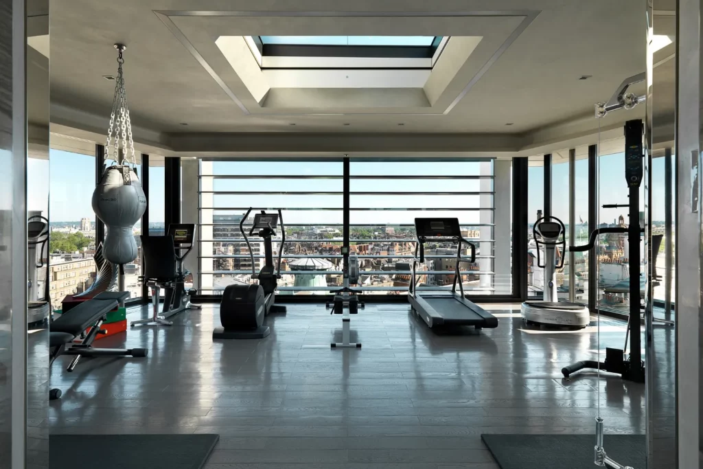 Додаткові переваги включають коктейль-бар, більярдний стіл, домашній кінотеатр, два кабінети та конференц-зали. У готелі є приватний спа-центр з процедурним кабінетом, сауною та паровою лазнею. Спеціальний тренажерний зал оснащений найновішим технологічним обладнанням. Крім того, в квартирі є чотири підземні паркувальні місця, що охороняються, чотири комори, два другорядні входи для персоналу і окрема кімната для персоналу. Продумано спроектовані задні зони забезпечують ефективне та непомітне обслуговування на всій території готелю.