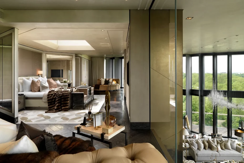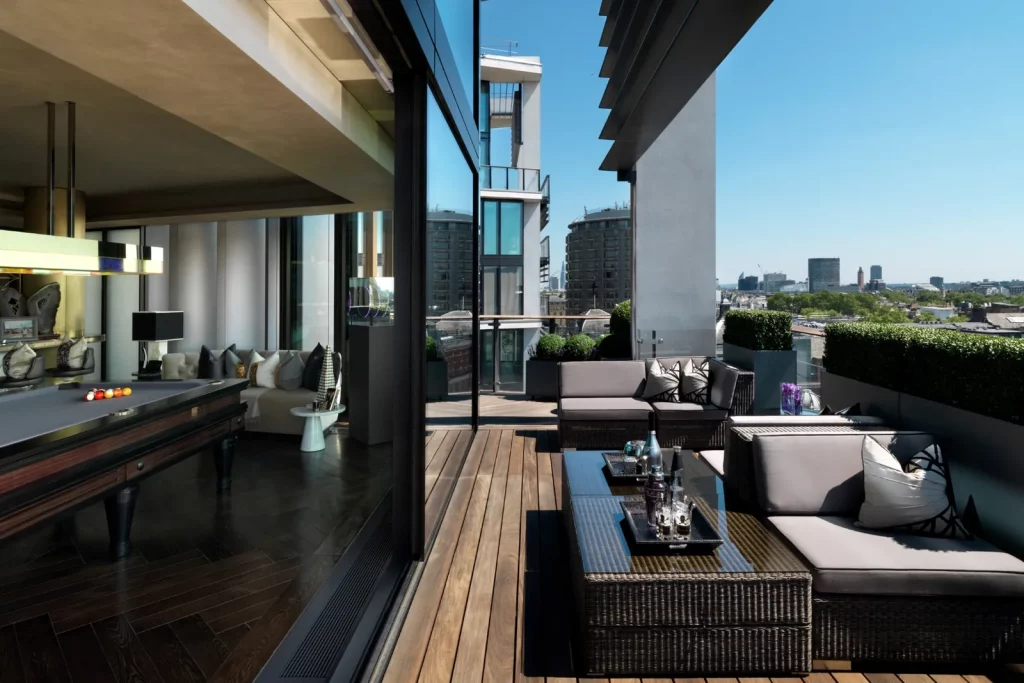 Цей пентхаус з п'ятьма спальнями, розташований в престижному житловому комплексі One Hyde Park, має площу 1 672 кв.м і займає десятий і одинадцятий поверхи. Пентхаус - один з найкращих об'єктів житлової нерухомості в Лондоні, що пропонує безпрецедентну житлову площу, в суперпрестижному місці в Найтсбріджі, з панорамним видом на Гайд-парк. У будинку є тераси по периметру. One Hyde Park - один з найексклюзивніших і найбезпечніших житлових комплексів у світі.