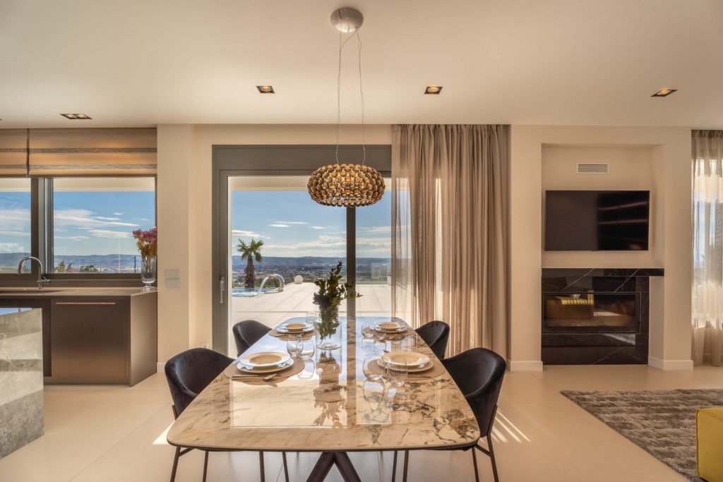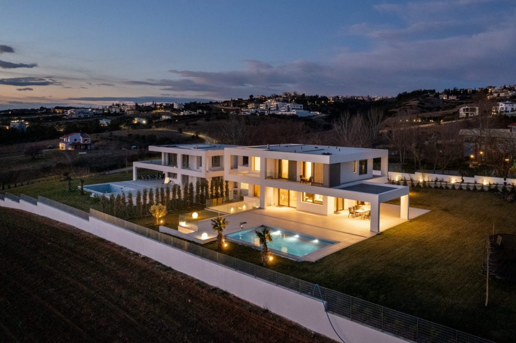 Однією з головних переваг цього будинку є чудовий вид на місто Салоніки, затоку Термаїкос та гору Олімп. Вечірні заходи сонця зачаровують і не залишать байдужими нікого, включаючи ваших гостей. Зовнішній простір, особливо вночі, створює відчуття перебування в п'ятизірковому курортному готелі.