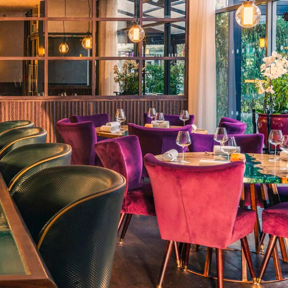 От потрясающего декора в стиле Людовика XVI в этом зале захватывает дух, а яркая подача блюд соответствует обстановке. Не менее впечатляет и сама кухня, демонстрирующая баланс, утонченность и глубину вкуса на каждом шагу. Достаточно взглянуть на меню с такими блюдами, как лангустин “à la nage”, чтобы понять, что классические французские техники и роскошные ингредиенты играют большую роль в процессе приготовления. Разделяемые блюда “Arts de la Table” позволяют безупречной команде обслуживания поддерживать театр тележки с геридоном.