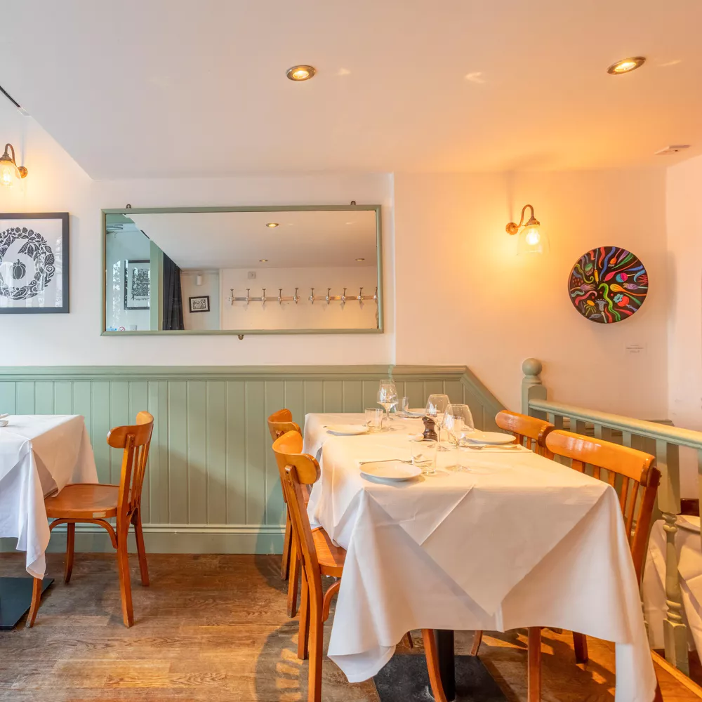 В этом ресторане, расположенном в бывшем пабе, вы найдете уютный и очень стильный ресторан, где изысканная кухня сочетается с эффективным, неторопливым обслуживанием. Наряду с заказом по меню, у вас есть возможность “создать свое собственное” дегустационное меню из 5 блюд, выбрав по одному блюду из каждого профиля “характера”; они варьируются от “Тонкого” (например, ризотто Acquerello) до “Робуста” (возможно, жареный ягненок) и заканчиваются “Жадным” на десерт. В основе всего – первоклассные ингредиенты и сильная классическая техника.