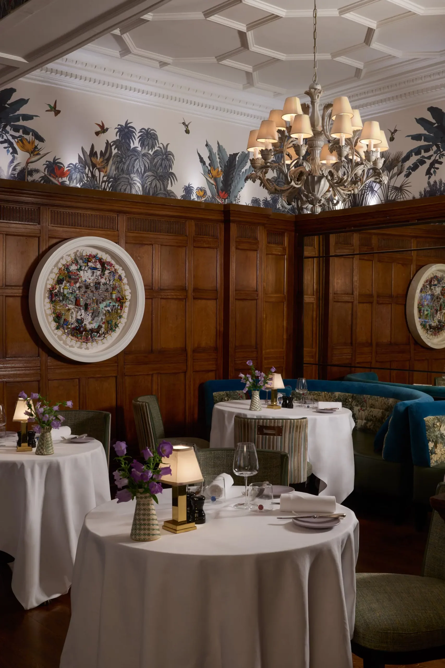 Вход в красивое лобби отеля задает тон трапезе в этом культовом ресторане, где люстры, зеркала и красные лакированные панели создают классически элегантную обстановку. Меню соответствует этому стилю, предлагая сочетание французской и британской классики, а обслуживает его вполне официальная команда.