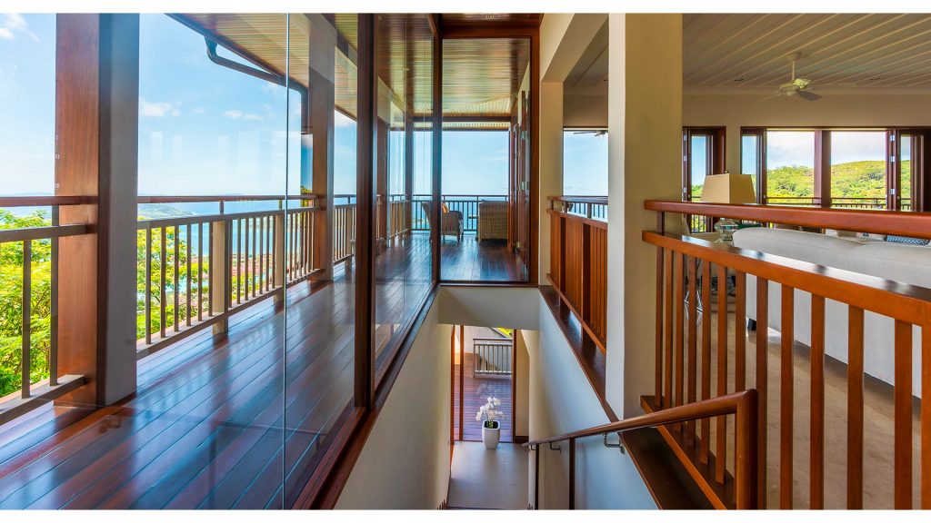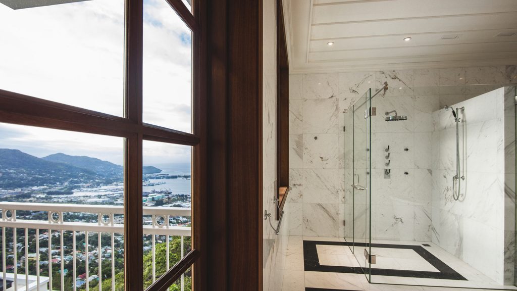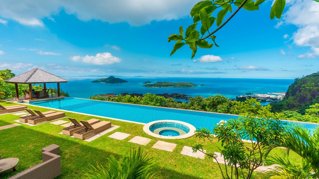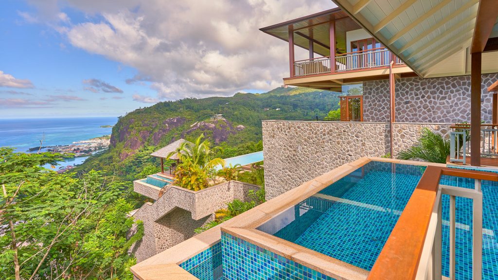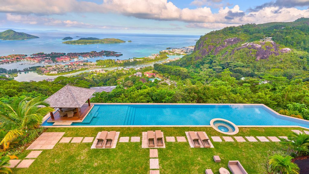 Це сучасна вілла в стилі паладіанського, розташована в ексклюзивному приватному житловому комплексі на головному острові Сейшельських островів Мае. Ця чудово обставлена вілла має просторі світлі кімнати з високими стелями, з яких відкривається приголомшливий вид на острови і океан. На додаток до житлових приміщень, на віллі є пейзажний басейн, джакузі, тренажерний зал, спа, сауна, домашній кінотеатр, бар та ігрова зона.