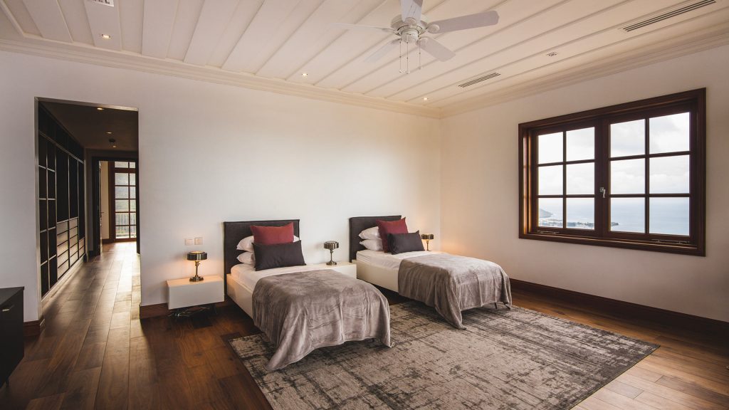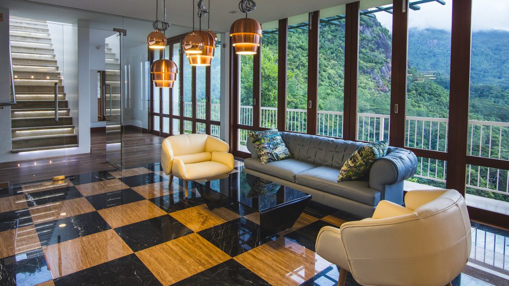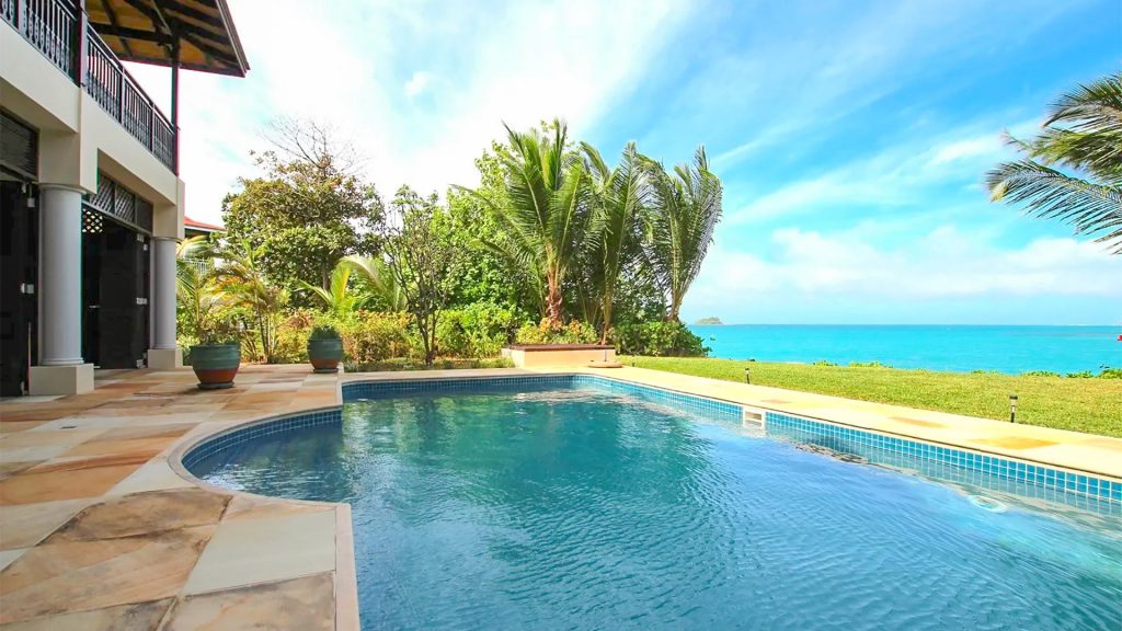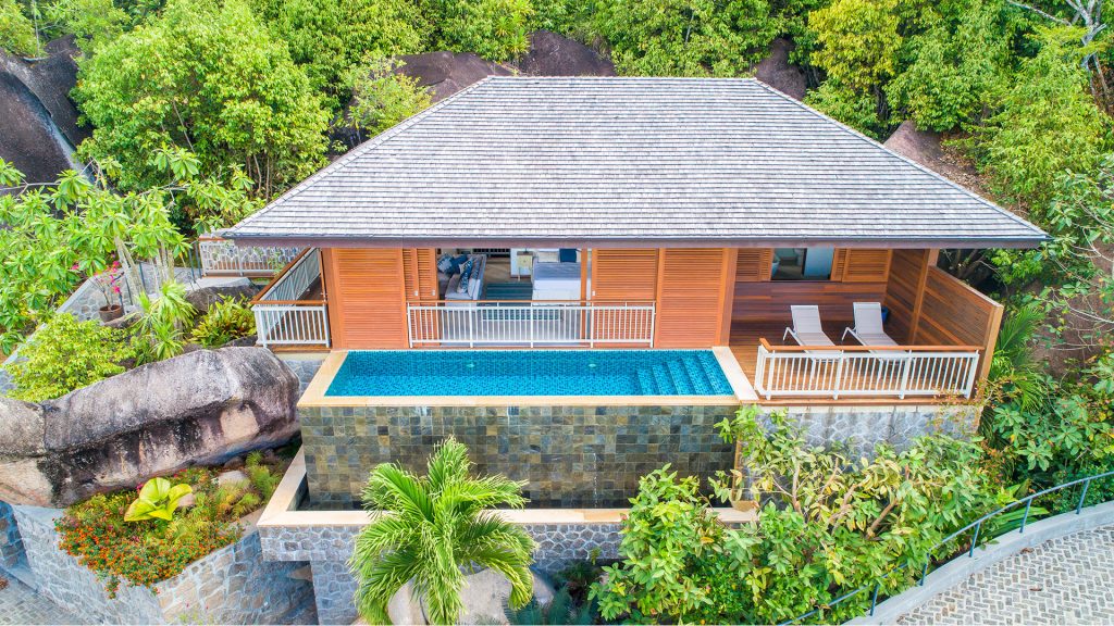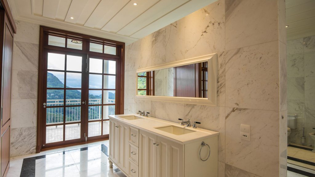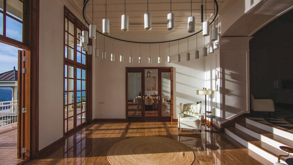 Це сучасна вілла в стилі паладіанського, розташована в ексклюзивному приватному житловому комплексі на головному острові Сейшельських островів Мае. Ця чудово обставлена вілла має просторі світлі кімнати з високими стелями, з яких відкривається приголомшливий вид на острови і океан. На додаток до житлових приміщень, на віллі є пейзажний басейн, джакузі, тренажерний зал, спа, сауна, домашній кінотеатр, бар та ігрова зона.