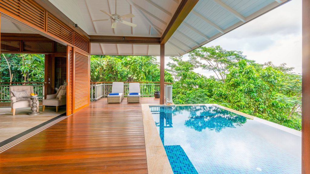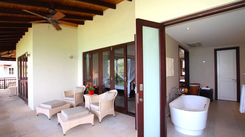 Відокремлений будинок пропонує головну резиденцію з трьома спальнями з ванними кімнатами, кожна з яких має свою унікальну індивідуальність, формальну вітальню та повністю укомплектований бар, розважальну зону з більярдним столом, бібліотеку з колекцією унікальних книг, сучасну та повністю обладнану кухню з власною їдальнею, в якій можуть розміститися до 12 членів сім'ї та друзів. Заховані в пишній рослинності, ще три незалежні просторі вілли з ванними кімнатами, повністю обладнаний тренажерний зал і великий приватний басейн з обідньою зоною на відкритому повітрі. Вишуканий 600-метровий пляж з білою пудрою пропонує чудові заходи сонця та ранкові купання, а також захоплюючий вид на затоку з прямим виходом з готелю.