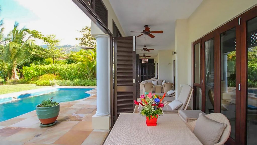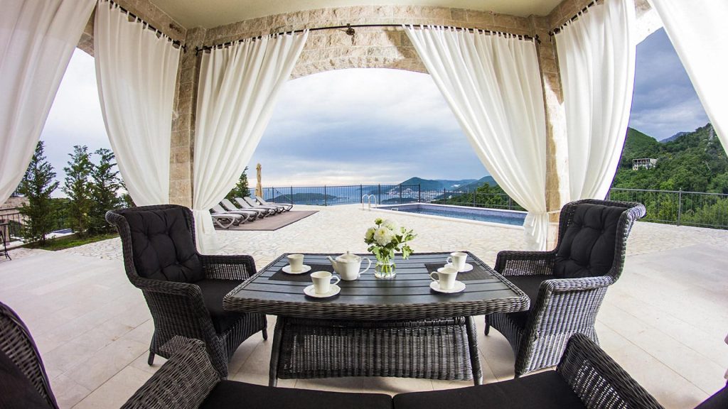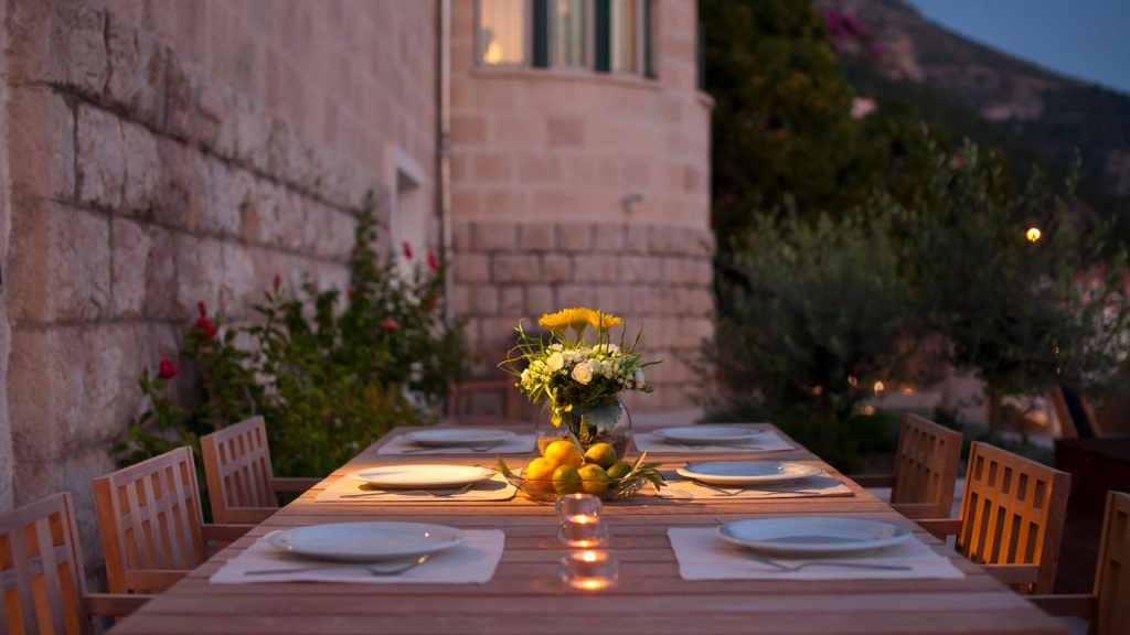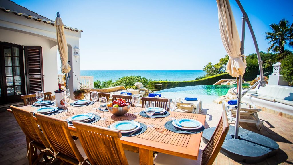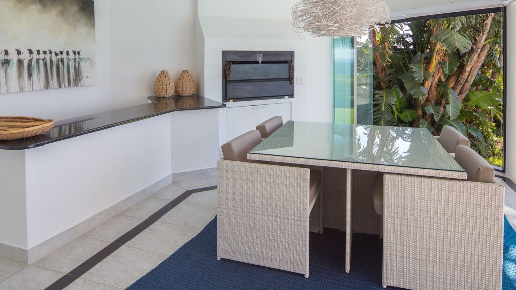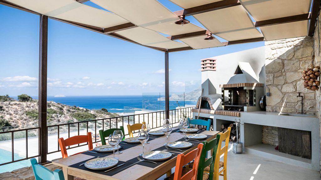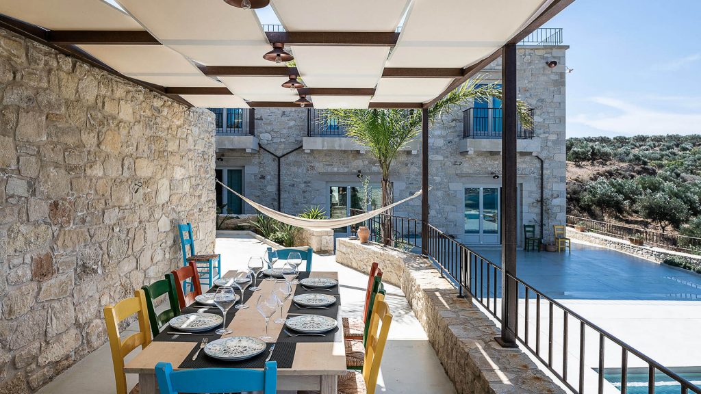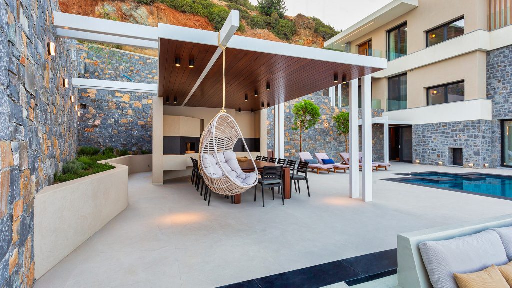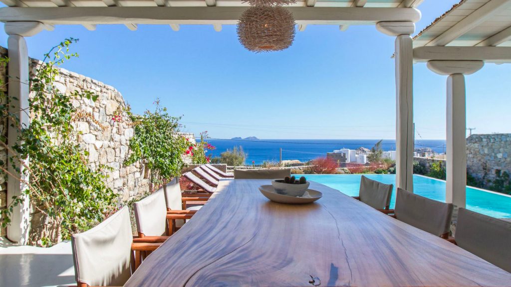 Величезна тераса перед віллою з видом на басейн (підігрівається за запитом) є ідеальним місцем для трапези на свіжому повітрі.