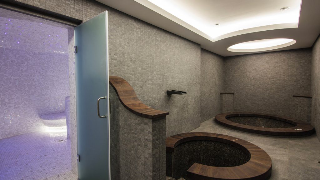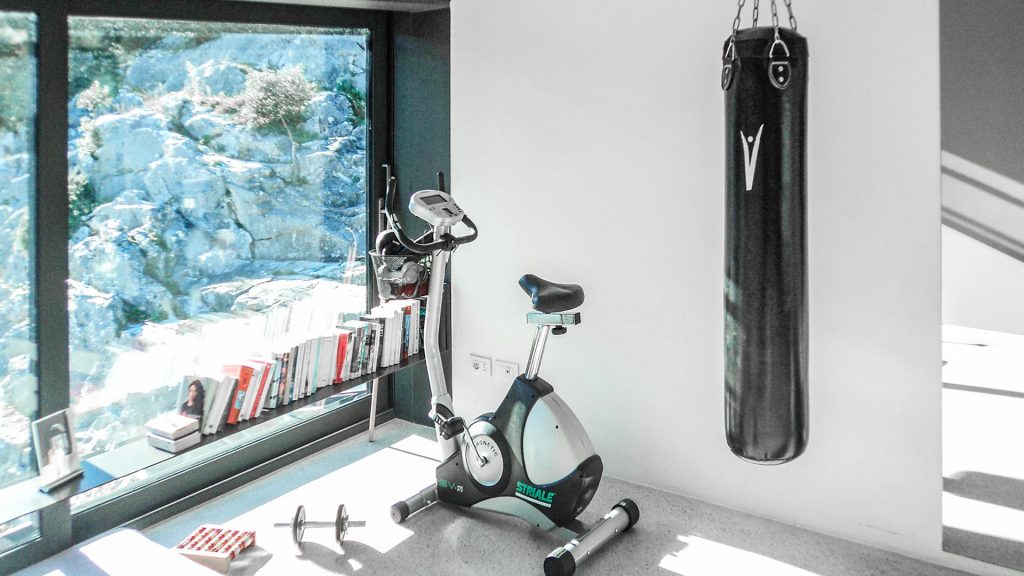 Зайшовши на територію, ми бачимо на рівні саду великий зал, їдальню на 12 осіб, велику вітальню з каміном та телевізором зі світлодіодним екраном (супутникові канали), повністю обладнану кухню, хаммам, масажний кабінет та фітнес-зал.