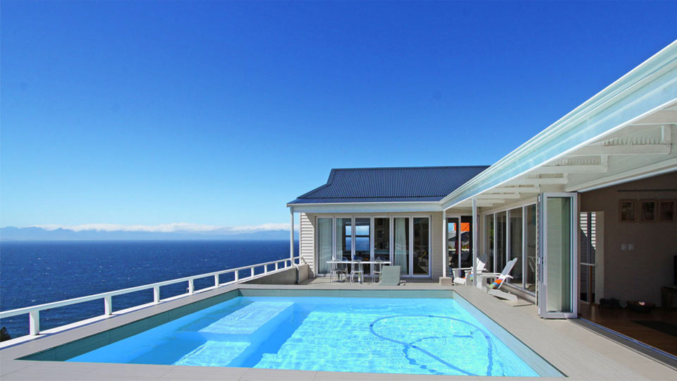 Приватний басейн нагрівається сонячними панелями. З тераси можна помилуватися видом на океан та південноафриканську рослинність.