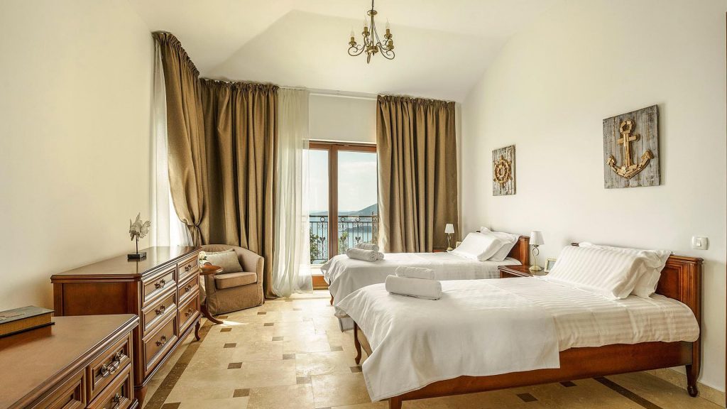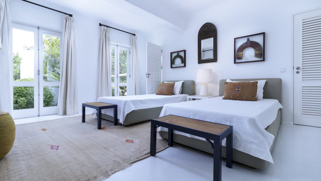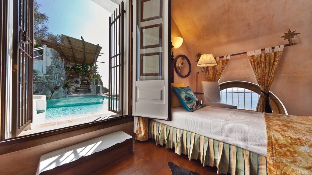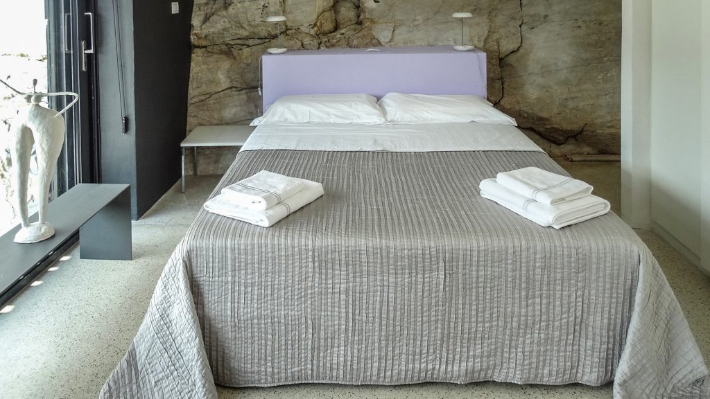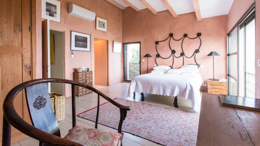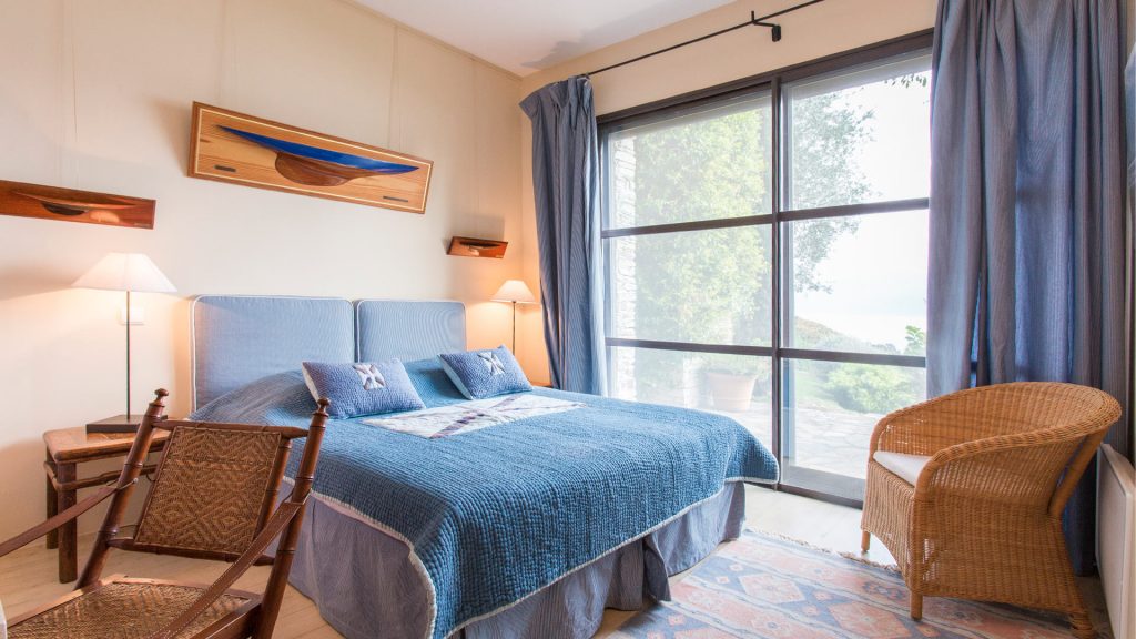 Характерні сходи Cimentogonia ведуть на другий поверх, де головна спальня має власний балкон та пропонує вид на блакитні води Егейського моря. У цій спальні є власна ванна кімната з ванною.
