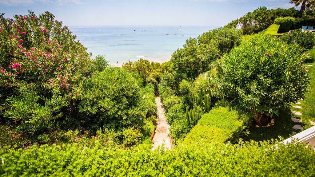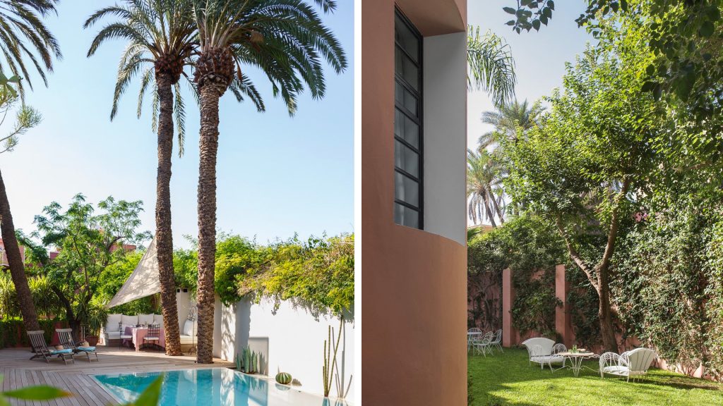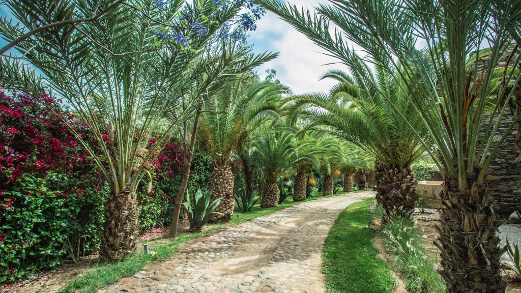 Сад засаджений квітами та деревами, чудовими пальмами. Є багато тінистих місць та критих терас, де можна випити м'ятний чай або скуштувати чудові страви місцевої чи французької кухні.