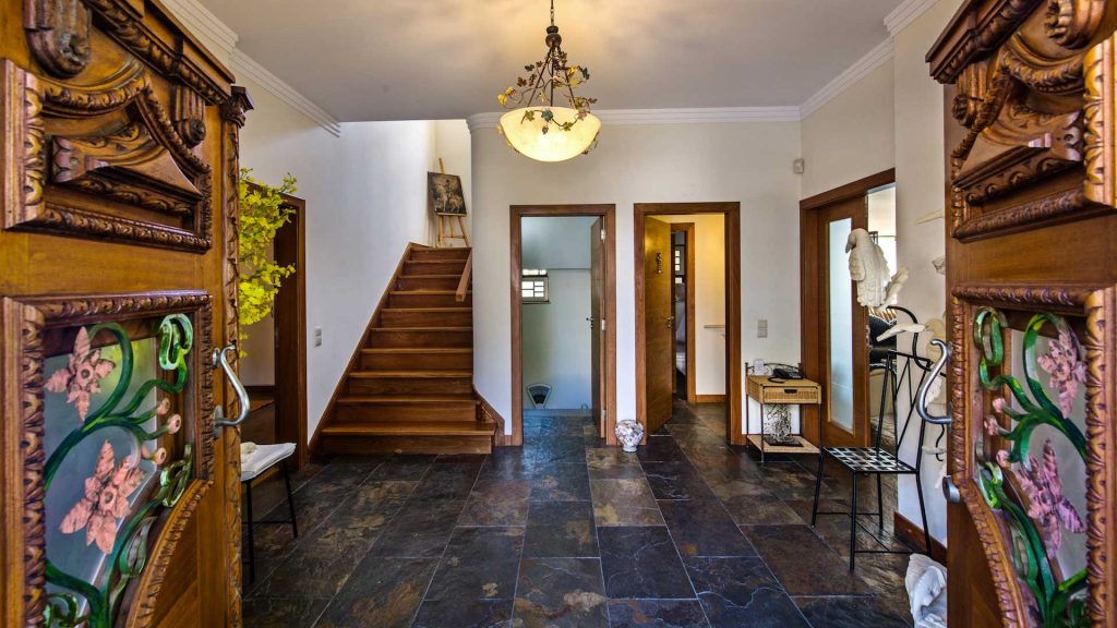 На першому поверсі будинку розташовані 4 спальні, кожна з подвійними дверима, що виходять в сад, 3 ванні кімнати (2 ванні), кабінет/комп'ютерний центр та кімната відпочинку з видом на водоймище. На другому поверсі знаходиться їдальня, вітальня відкритого планування та повністю обладнана кухня. Вітальня та їдальня ведуть до просторого патіо з садом і басейном, звідки відкривається чудовий краєвид на Фолс-Бей та красиві гори.