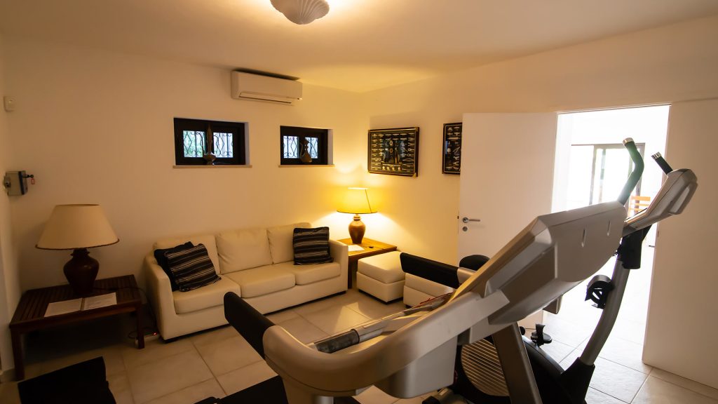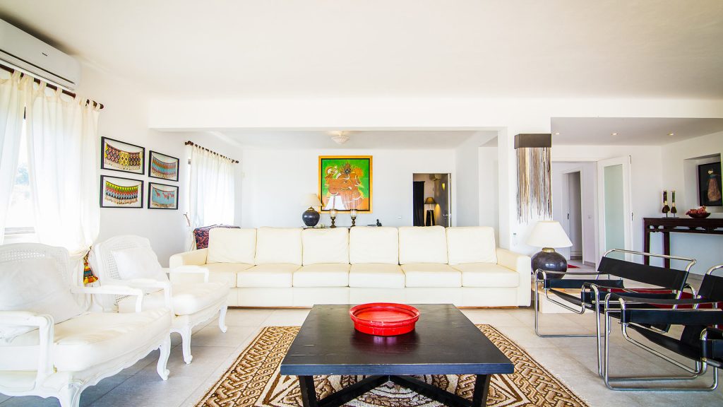 Вілла складається з двох віталень з диванами та телевізором та повністю кондиціонована. Їдальня доступна для 12 осіб у відкритому просторі з повністю обладнаною кухнею. Також є бар та ігрова кімната. Є веранда.