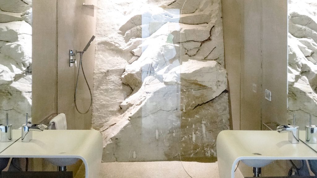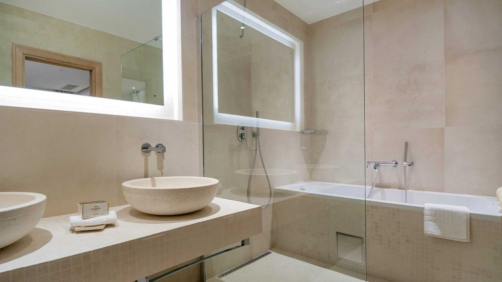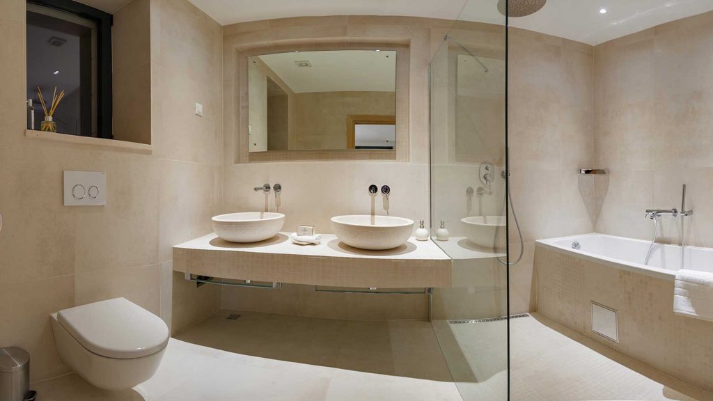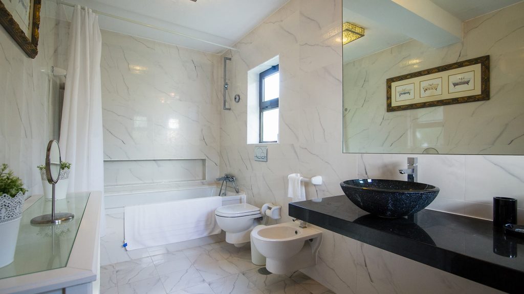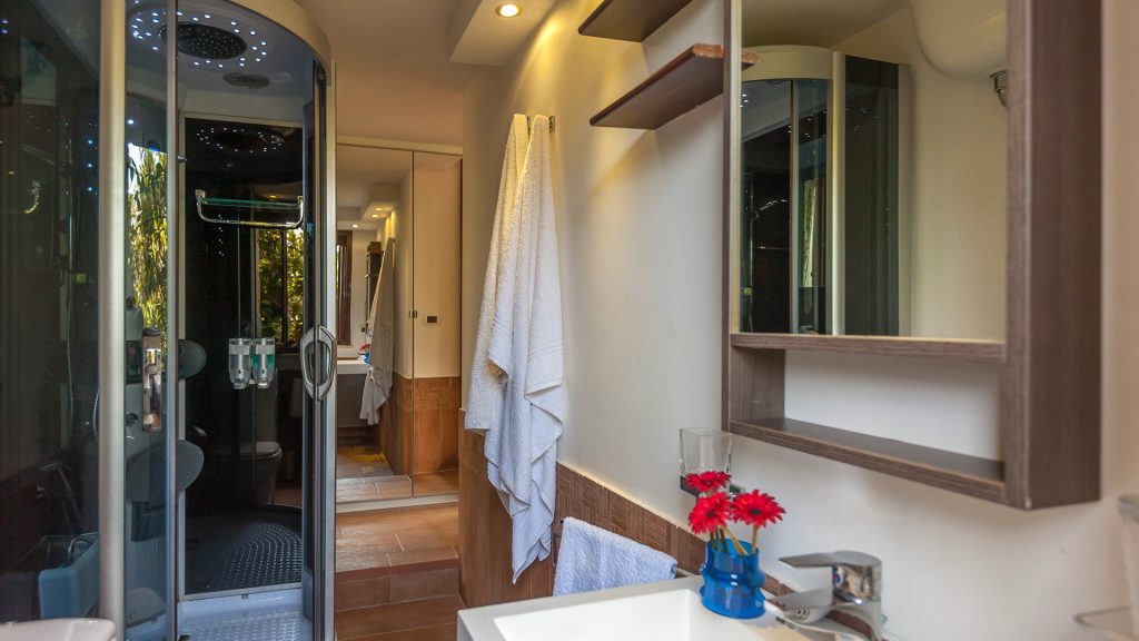 Усі ванні кімнати мають гарний душ в італійському стилі з мармуром. Раковини виготовлені з мармурових блоків.
