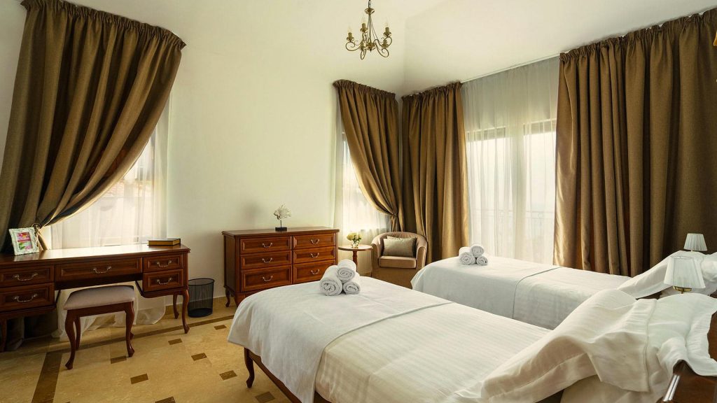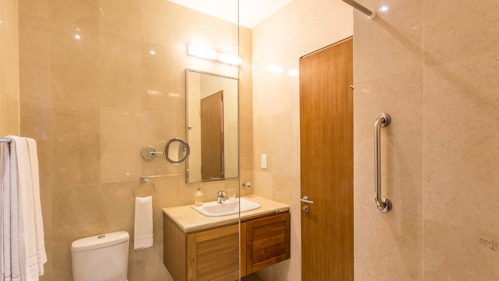 3 спальні (1 стандартна, 1 основна, 1 для людей з обмеженими можливостями) з ванними кімнатами.