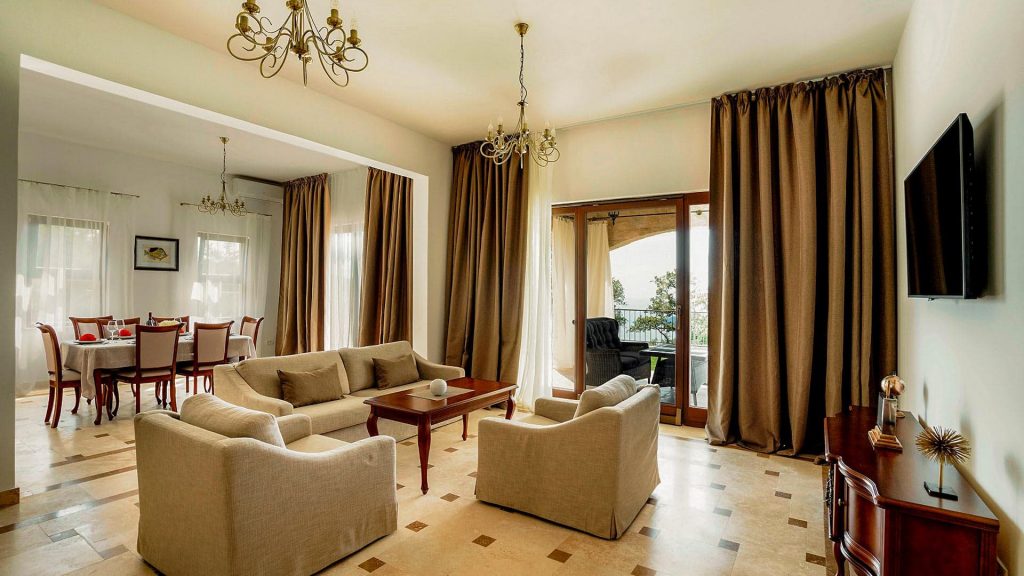 Вілла відрізняється чудовою якістю виготовлення та обставлена сучасними італійськими меблями. Якісні матеріали всюди: підлога з італійського мармуру, двері та вікна з твердих порід дерева, а також суцільний мідний дах. Центральне кондиціювання є у всіх кімнатах.