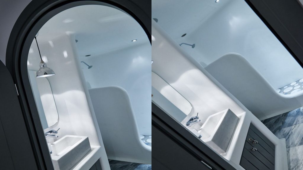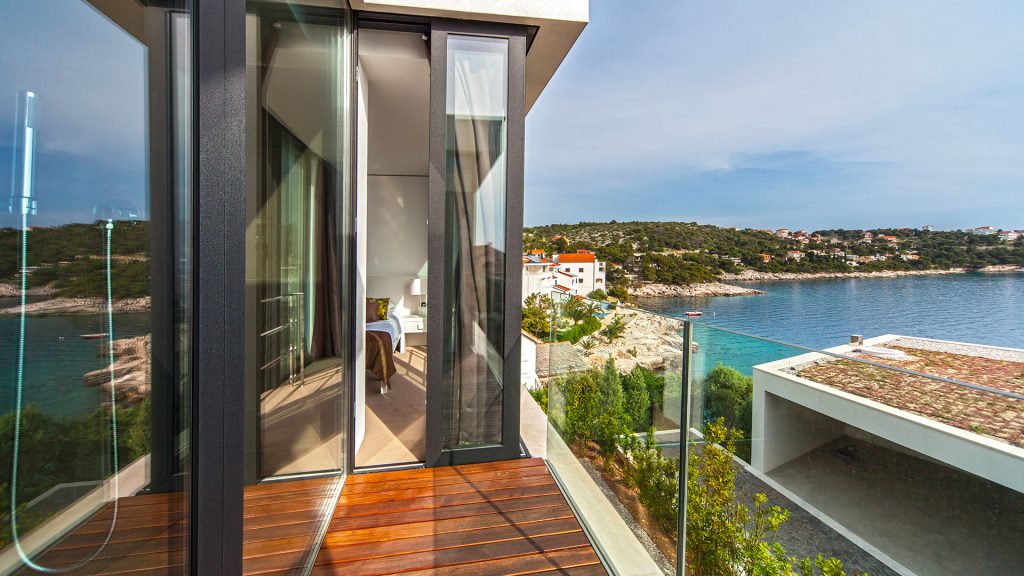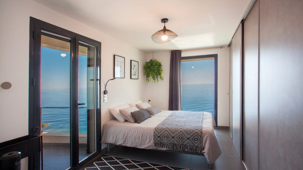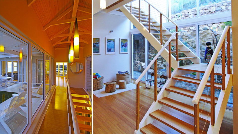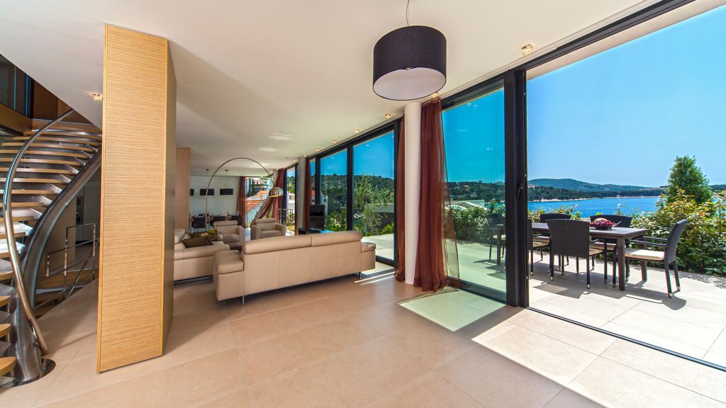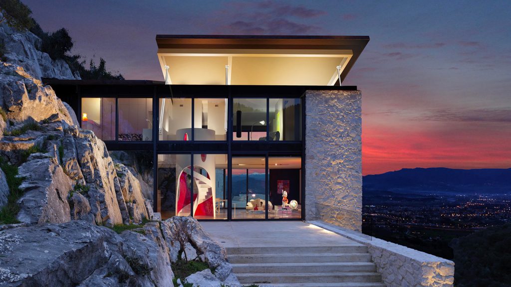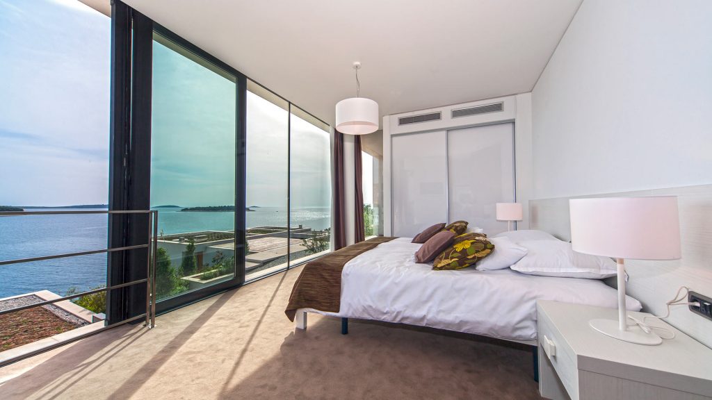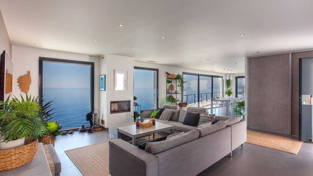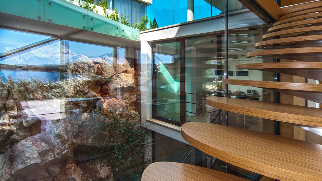 Житловий простір структурований на двох різних поверхах. Розсувні еркери пропускають природне світло протягом дня, що робить житлові приміщення світлими. Більше того, прямо зі спалень відкривається панорамний вид на море.