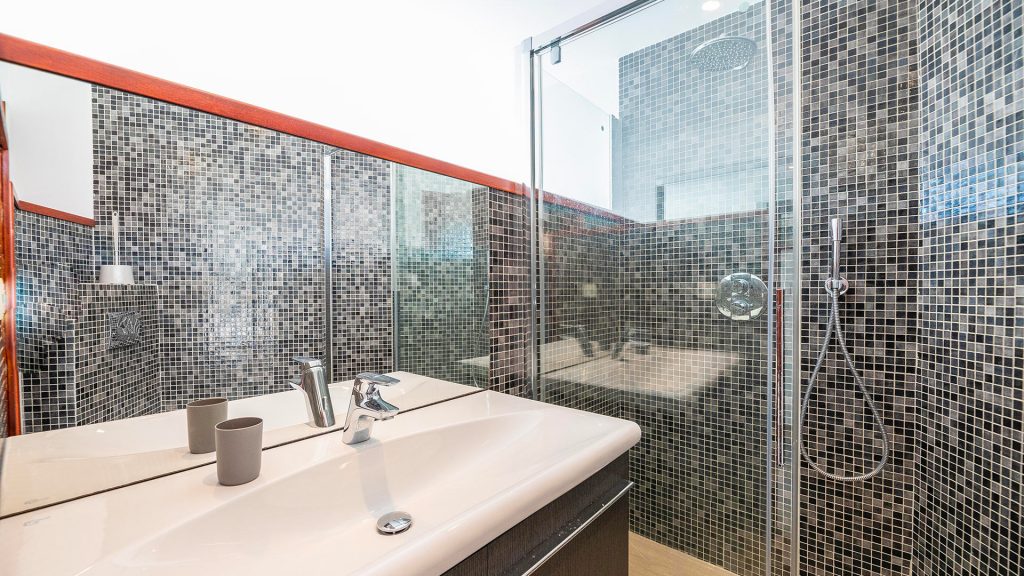 Спальня 2 – 2 односпальні ліжка (розкладаються у двоспальне), умивальник, туалет та повністю закритий душ