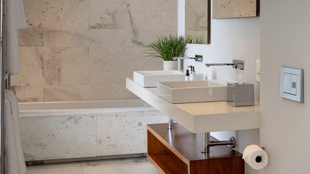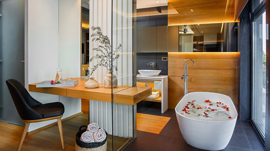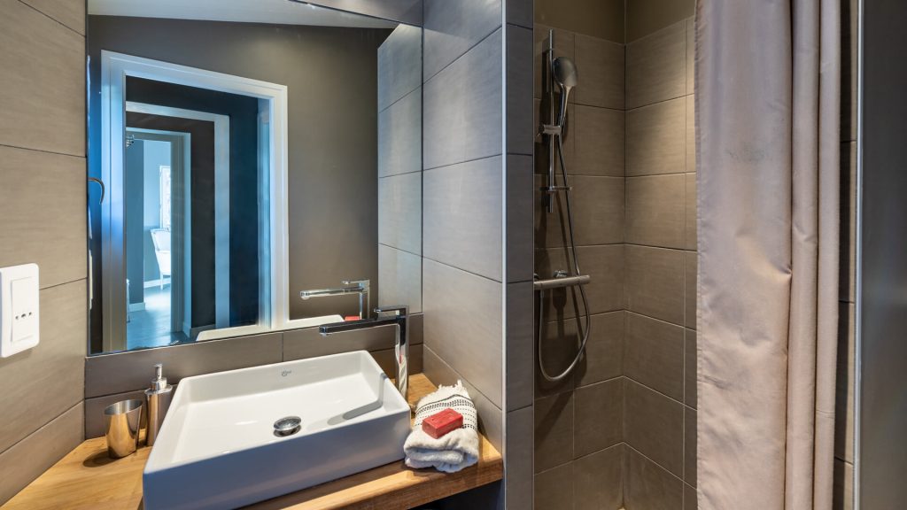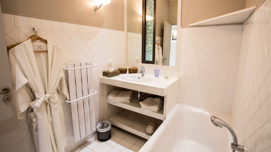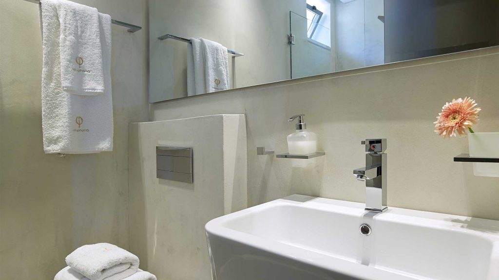 У ванних кімнатах є всі вигоди: мило і шампунь від грецького біобренду KORRES, фен, і, звичайно ж, гарні рушники, 1 великий та 1 маленький на людину.