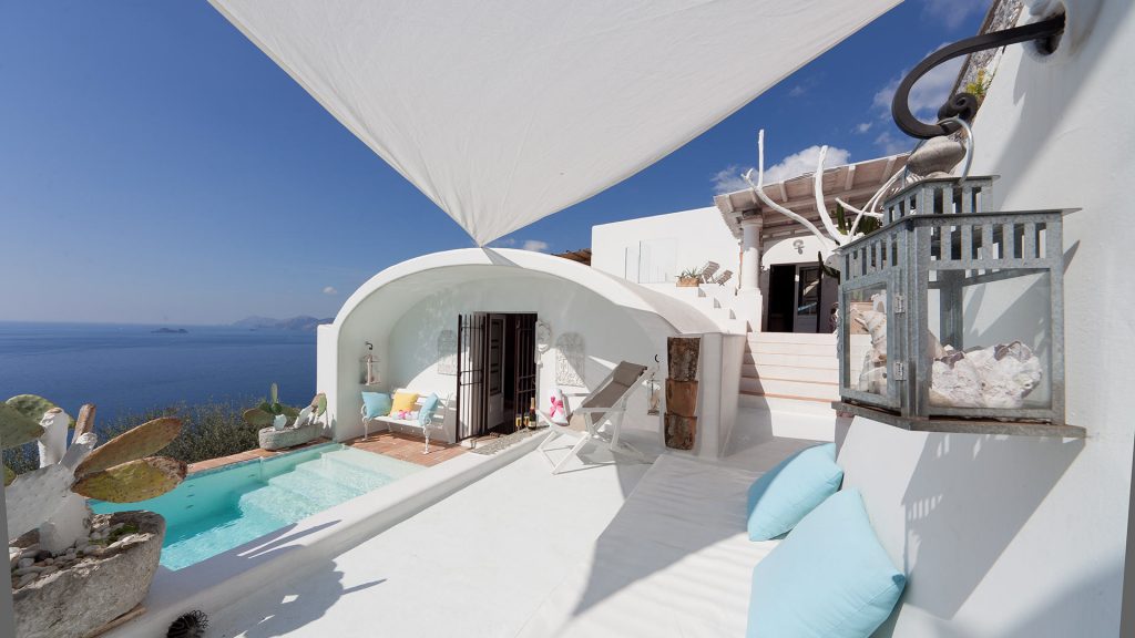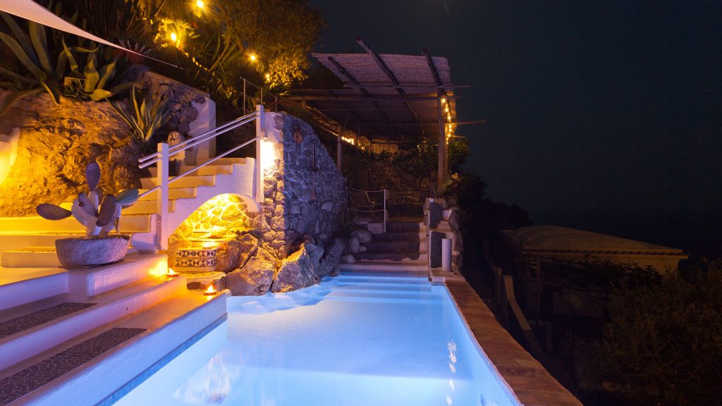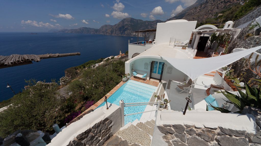 Розташована між лимонами, оливковими деревами, оточена Середземним морем, вілла має захоплюючий вигляд, підвішений між небом і морем, і виходить на прекрасну комуну Прайано, перед одним із найкрасивіших видів у світі: острів Капрі, Фаральоні, півострів Сорренто, Позітано та архіпелаг Лі Гал.
