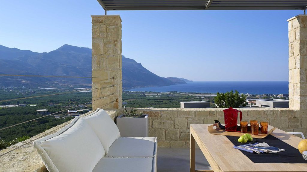 Вілла з видом на північний схід розташована в сільській місцевості на схилі пагорба за 2 км від міста Кіссамос, за 500 м від найближчого магазину, за 1 км від найближчого пляжу, за 20 хвилин їзди від регіонального центру Ханьї і за 55 км від аеропорту. Інші села, пляжі та визначні пам'ятки знаходяться за кілька хвилин їзди на орендованому автомобілі.