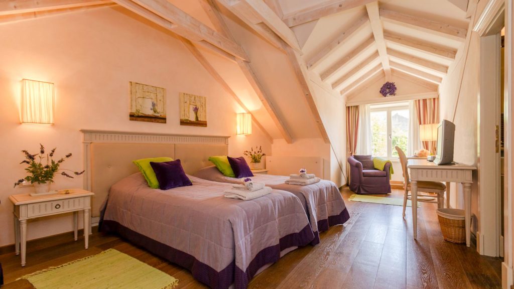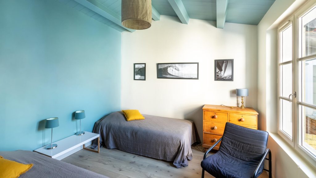 Спальня 4 – двоспальне ліжко та просте ліжко, умивальник та туалет