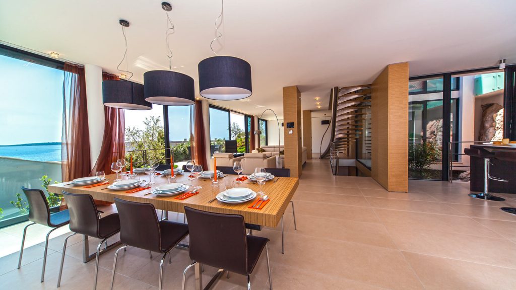 Сучасний і елегантний інтер'єр. Повністю обладнана кухня, вітальня та їдальня дають прямий доступ до басейну та тераси. Житлові приміщення наповнені природним світлом. У вас буде можливість поснідати, милуючись морем, або повечеряти на заході сонця.