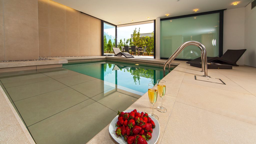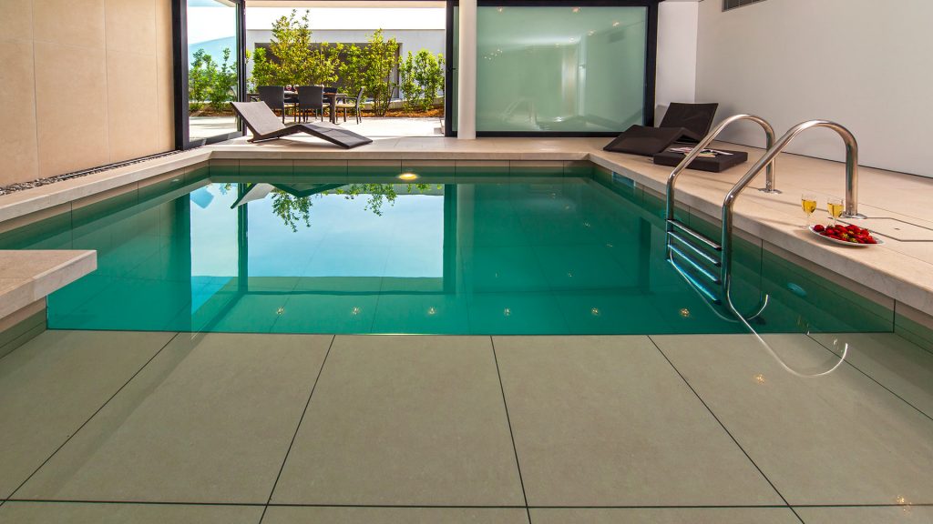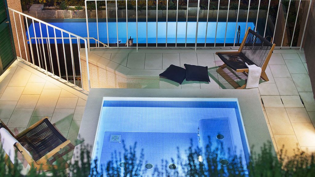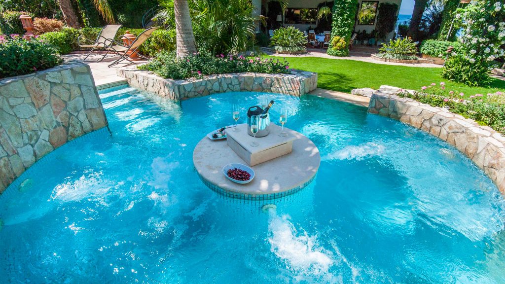Навколо павільйонів знаходиться красивий басейн, що підігрівається, у формі лагуни.