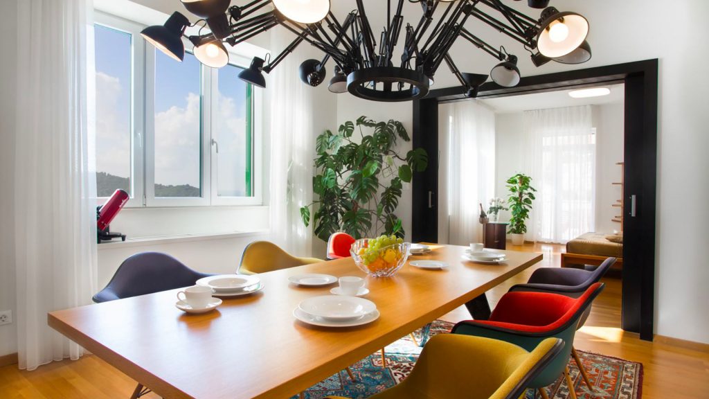 - Кухня, вітальня та їдальня відкритого планування, оснащені сучасною технікою