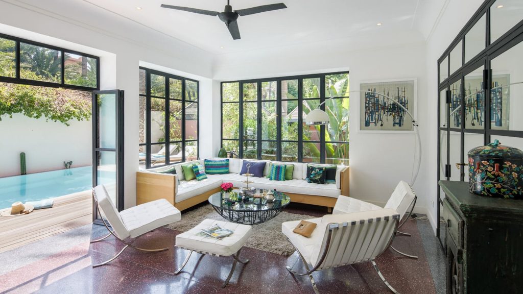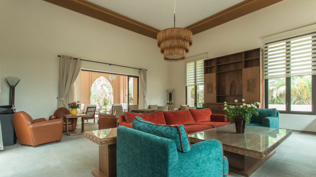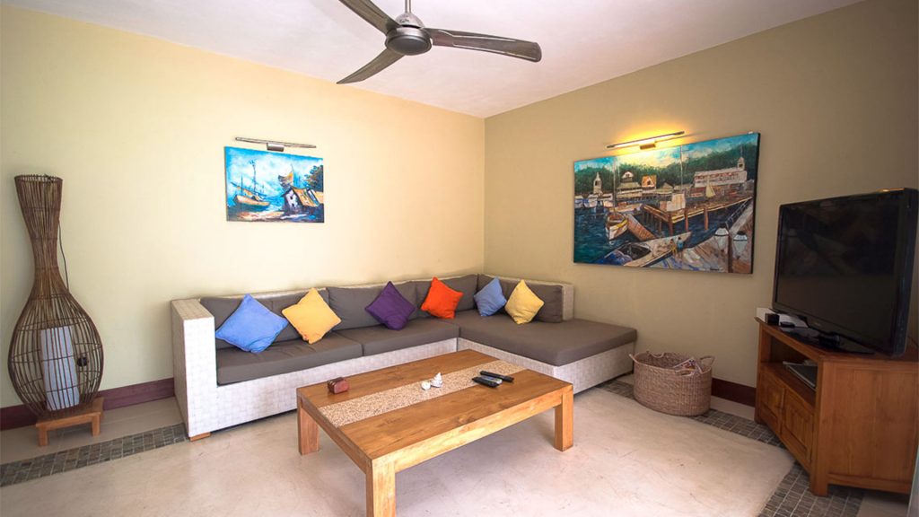 Вітальня вілли обставлена сумішшю колоніальних та сучасних предметів. Також є затишний читальний зал, ТВ-зал та їдальня на 12 місць.