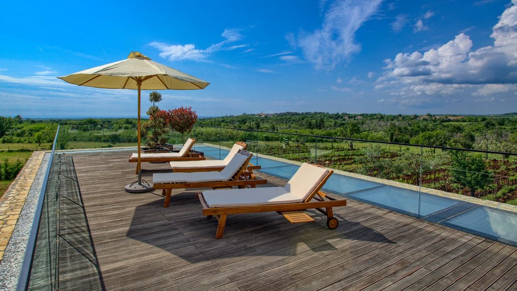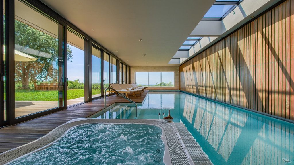 На віллі є великі тераси для панорамного чаювання та вечірок під зірками. Сад такий же великий та структурований, із зоною відпочинку (читання, йога, ...). Сегія тече вздовж павільйону та веде до 18-метрового басейну (з підігрівом). Будинок біля басейну веде до «оздоровчого центру» (на цокольному поверсі) з хаммамом, масажним кабінетом та душем. Приватний теніс доповнює картину.