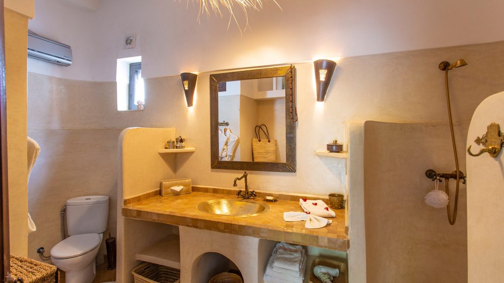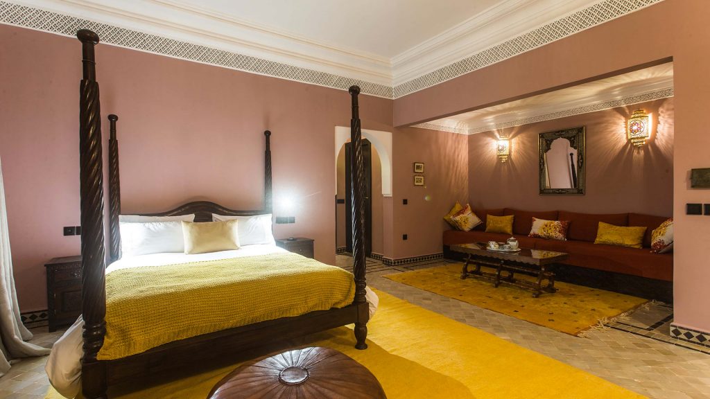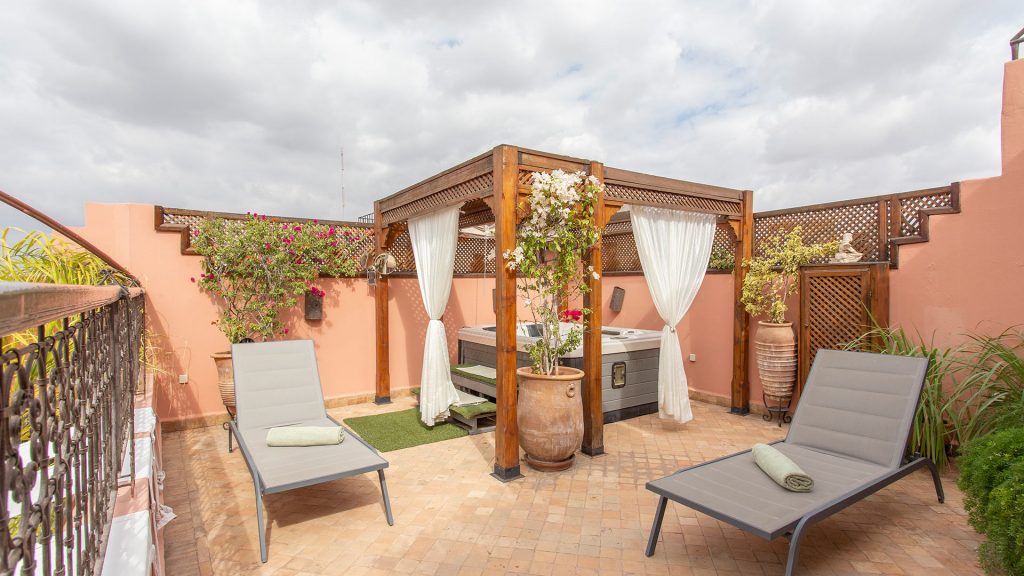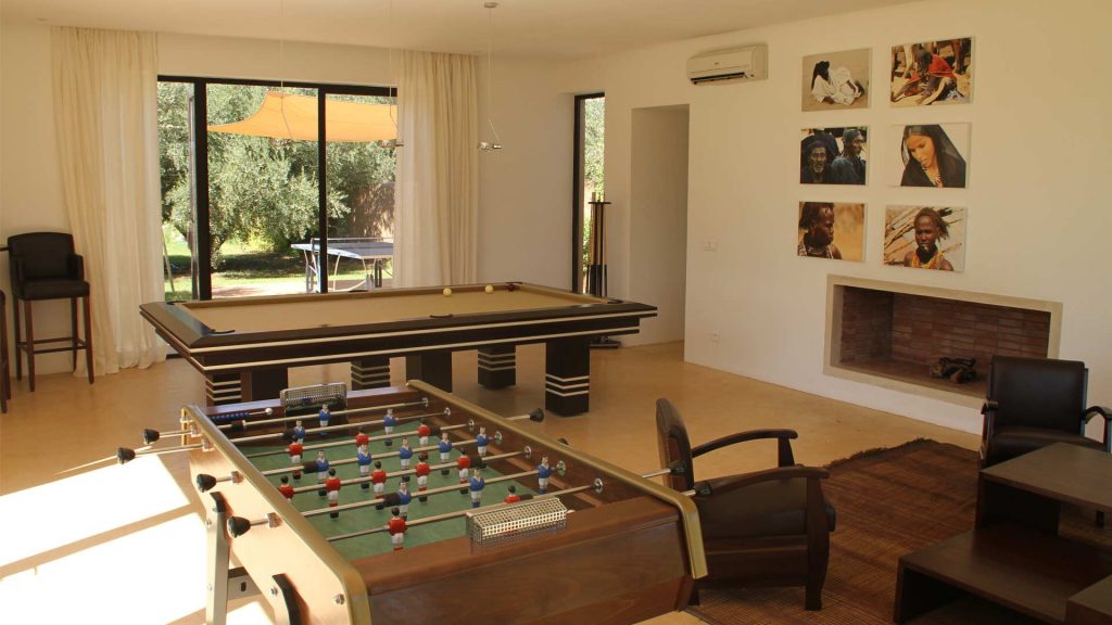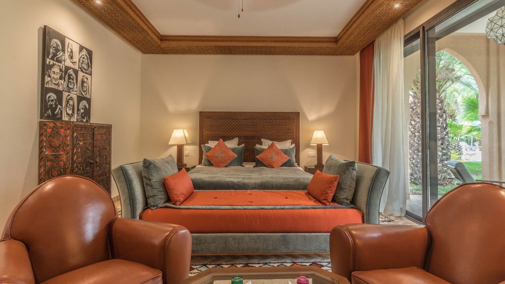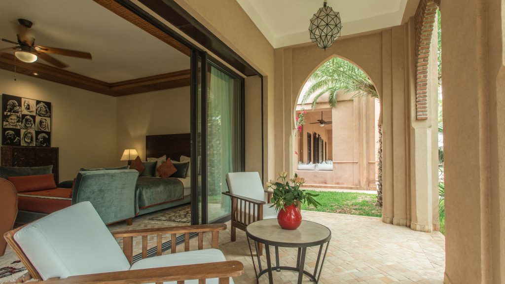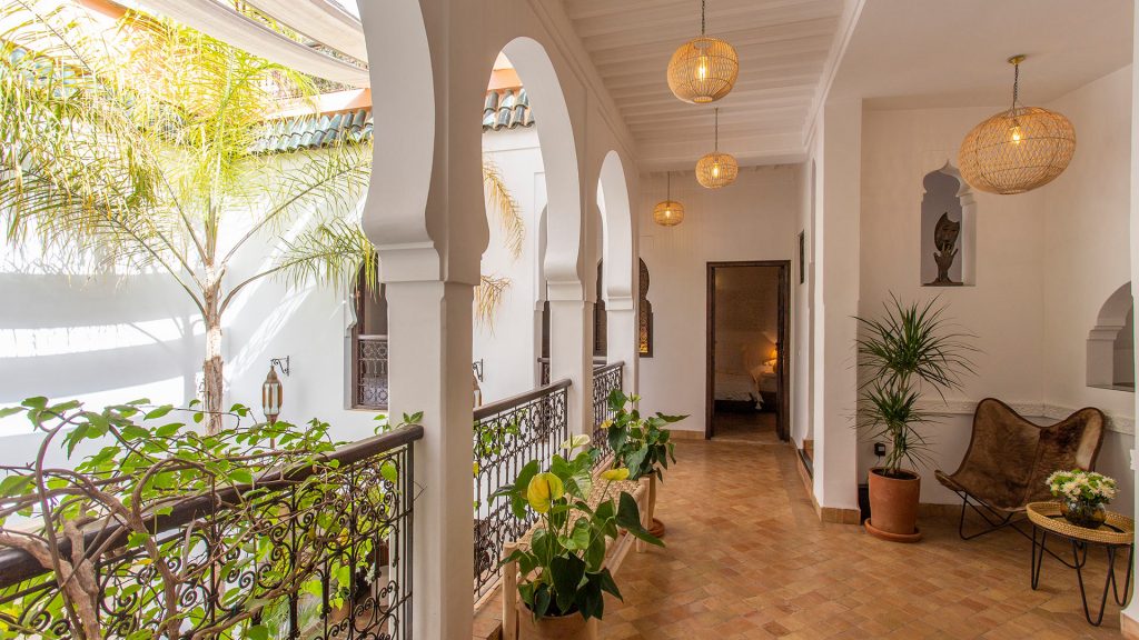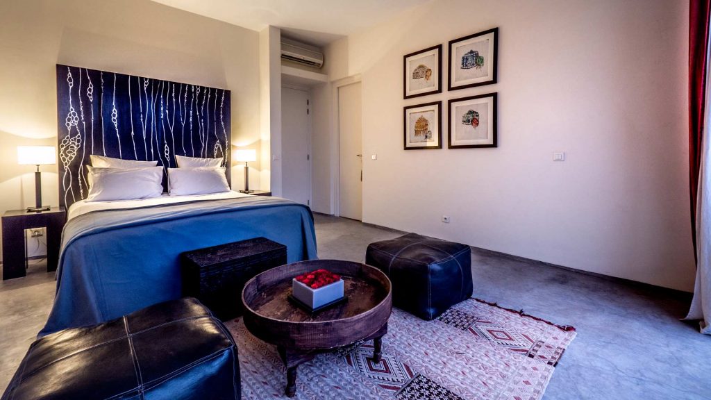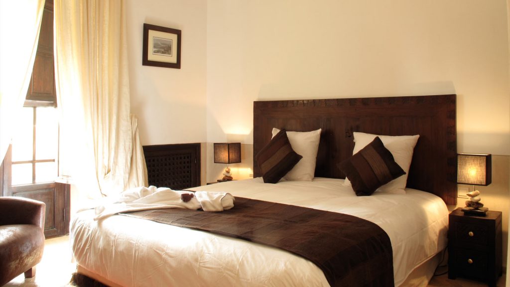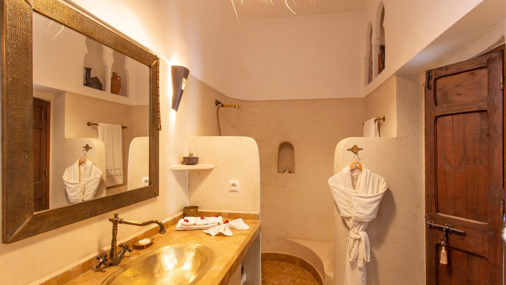 Усі номери світлі та сонячні, обставлені сучасними предметами та предметами етнічного мистецтва. Французькі вікна виходять на терасу, і вид на Атласький хребет просто приголомшливий, особливо в зимовий час. Є велика вітальня, їдальня та телевізор або сімейна кімната. Є камін та зручні дивани, гарний хаммам та масажний кабінет. Процедури доступні на запит.