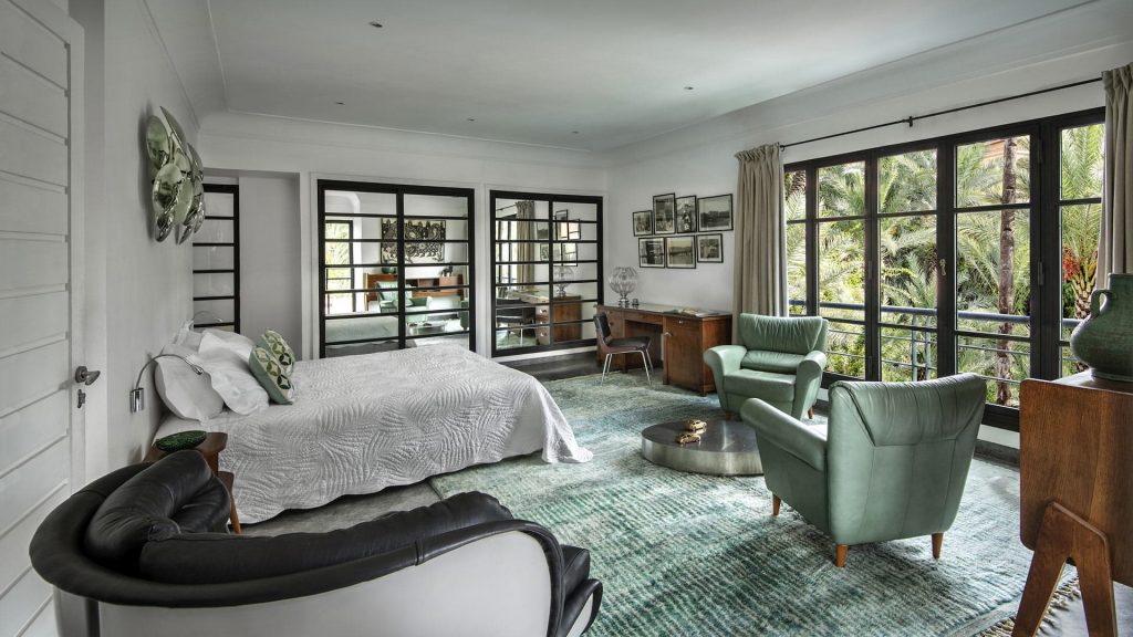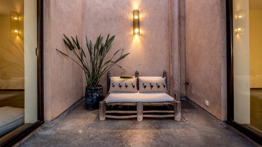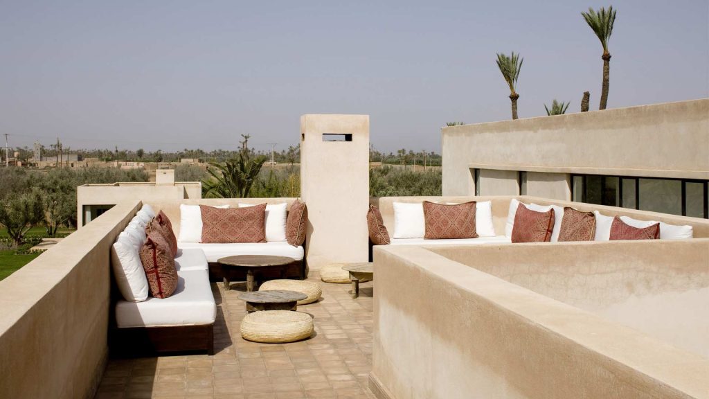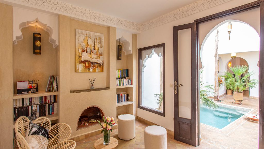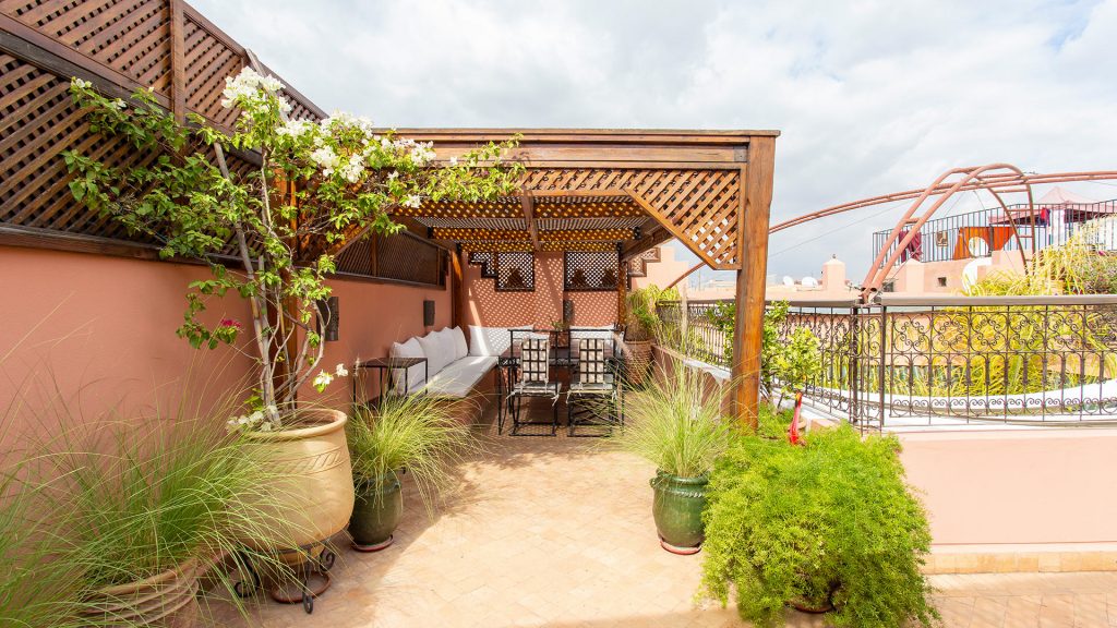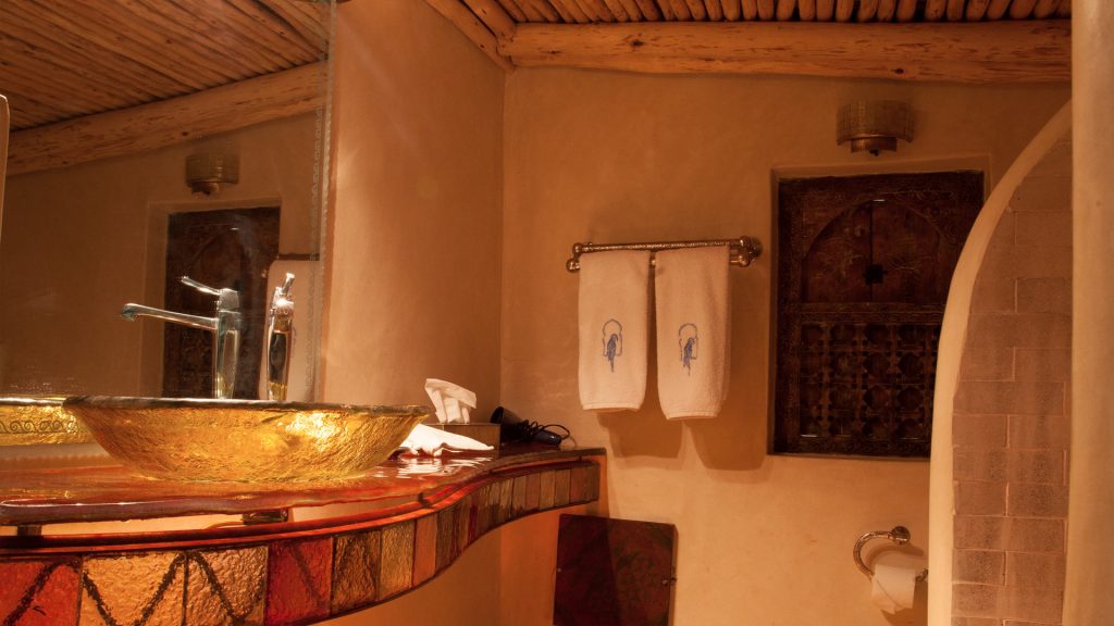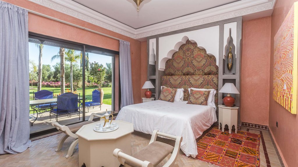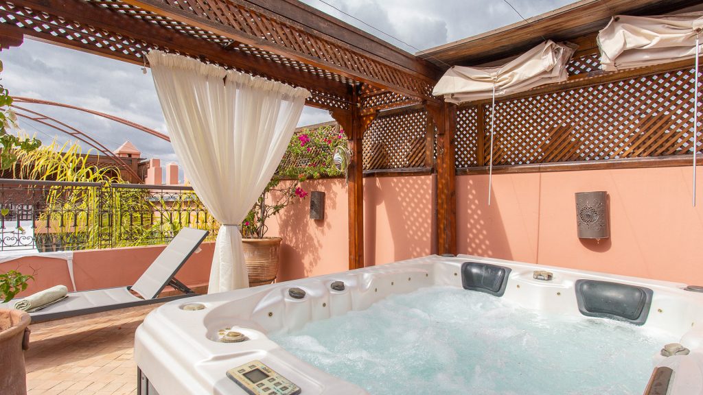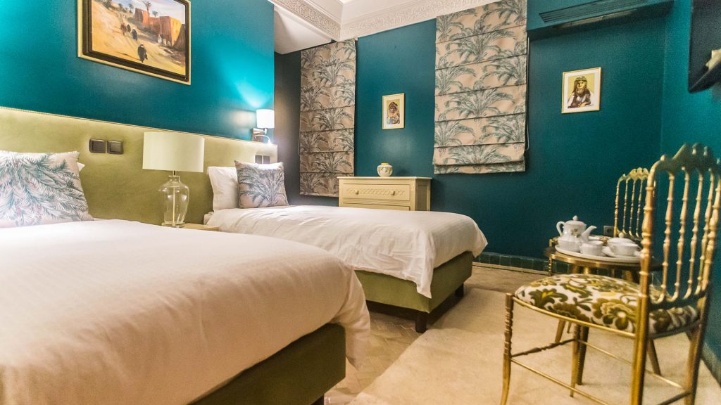 Усі номери світлі та сонячні, обставлені сучасними предметами та предметами етнічного мистецтва. Французькі вікна виходять на терасу, і вид на Атласький хребет просто приголомшливий, особливо в зимовий час. Є велика вітальня, їдальня та телевізор або сімейна кімната. Є камін та зручні дивани, гарний хаммам та масажний кабінет. Процедури доступні на запит.