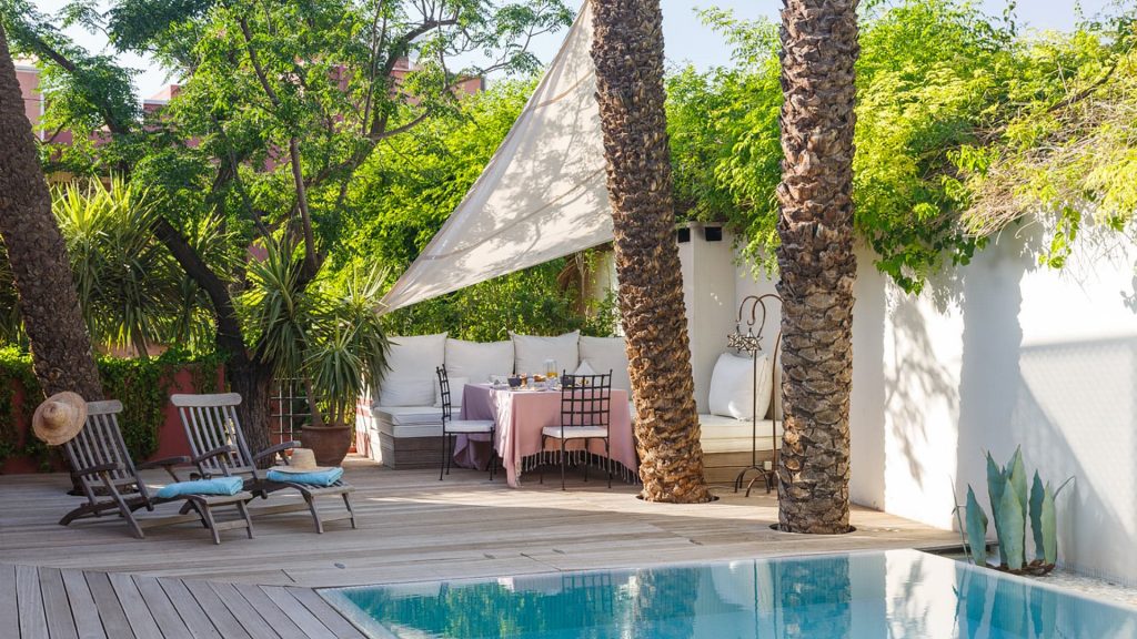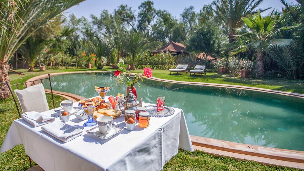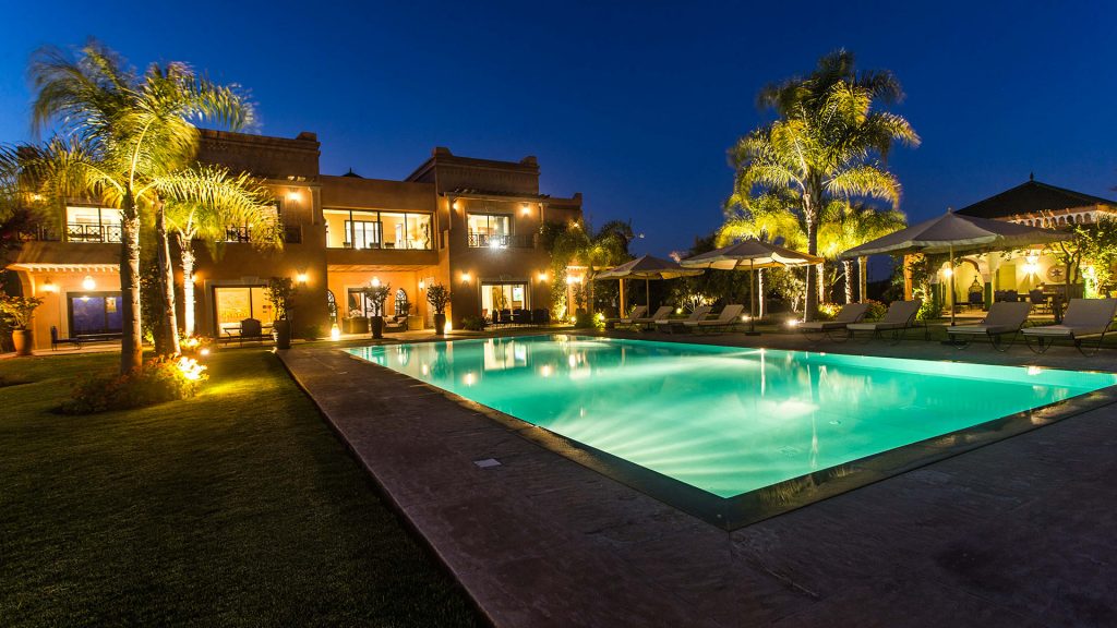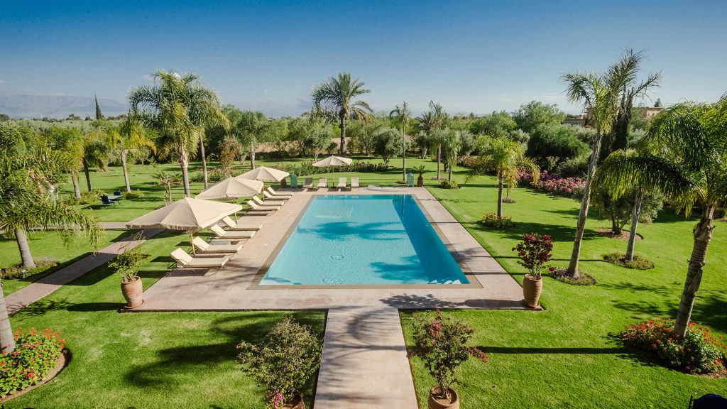 Цей чарівний готель розташований у пальмовій алеї Марракеша, менш ніж за 15 хвилин від центру міста Марракеш. У готелі є 16 спалень (до 36 гостей) у великому приватному та красивому саду, приватний басейн з підігрівом та хаммам. Вілла повністю укомплектована кухарем, покоївкою, дворецьким, садівником.