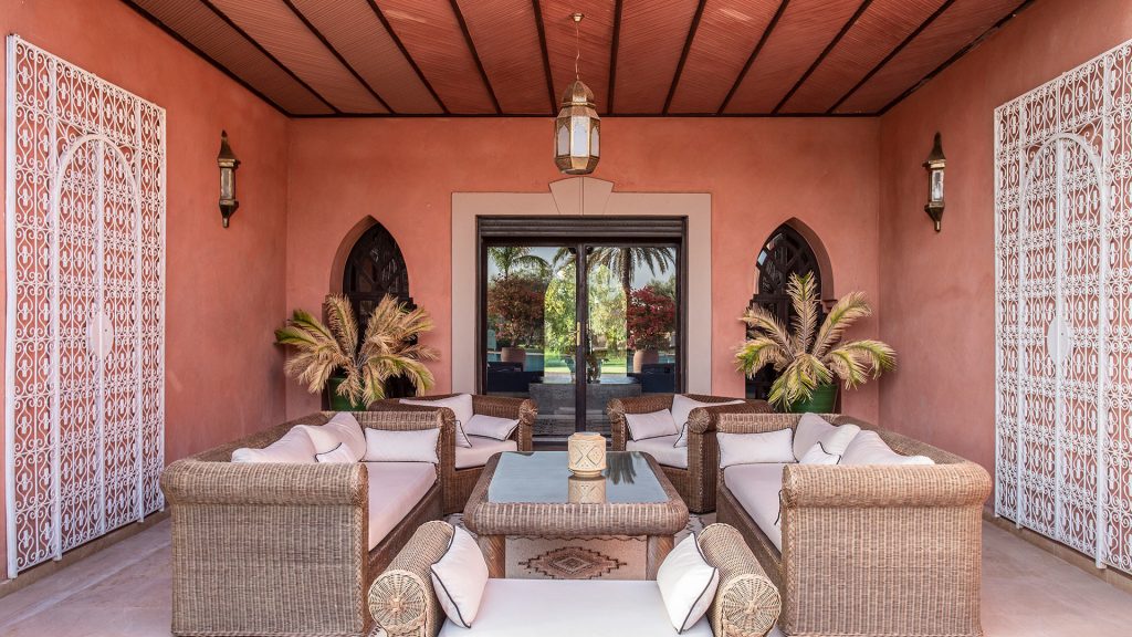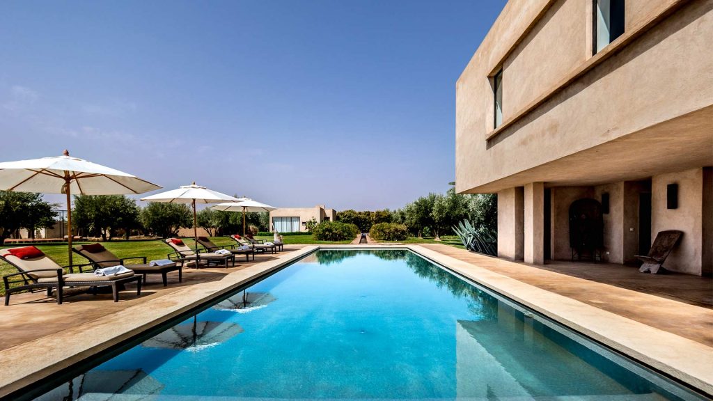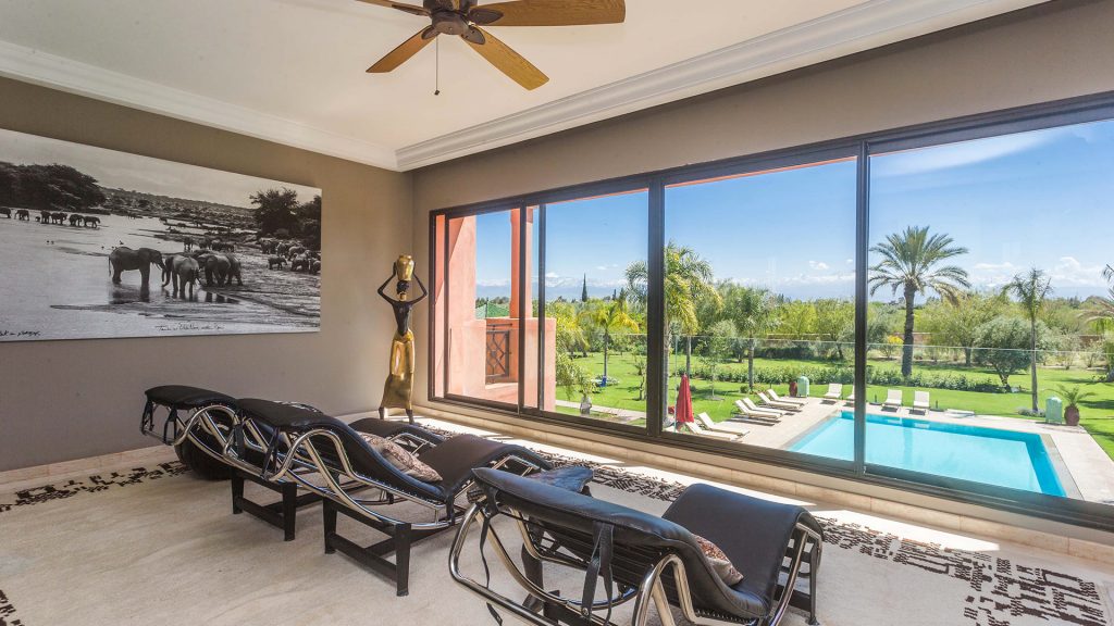 Вілла площею 650 м² має 13 кімнат, у тому числі 9 з чітким видом на Атлас та відкритою панорамою завдяки великим розсувним вікнам. Є приватний тенісний корт та тренажерний зал. Повністю кондиціонований.